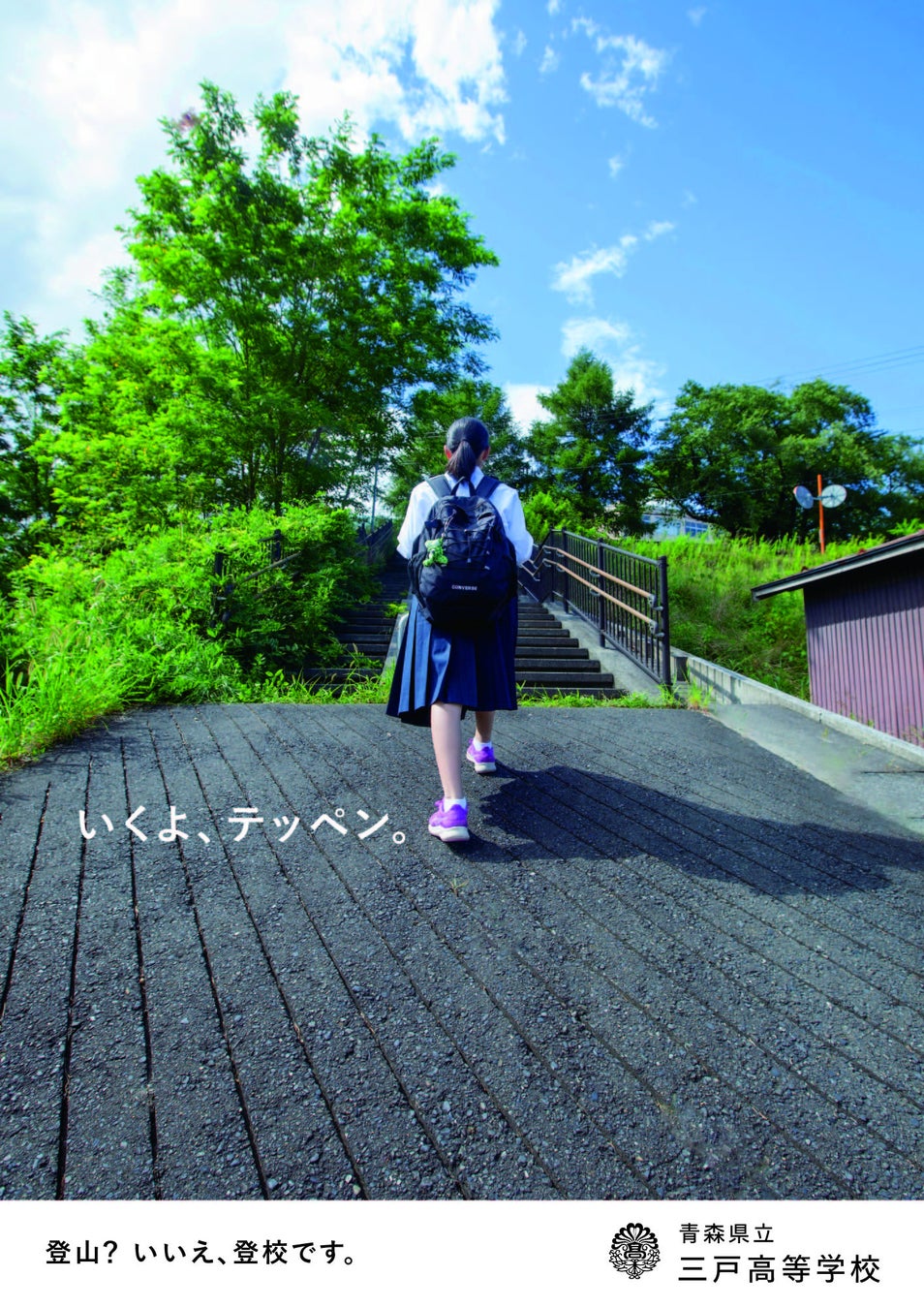 丘の上にある三戸高校。毎朝の登校はまるで登山のよう。でも、毎日歩いていると、先が見えてくる。そんな坂道の通学路で撮影をしました。