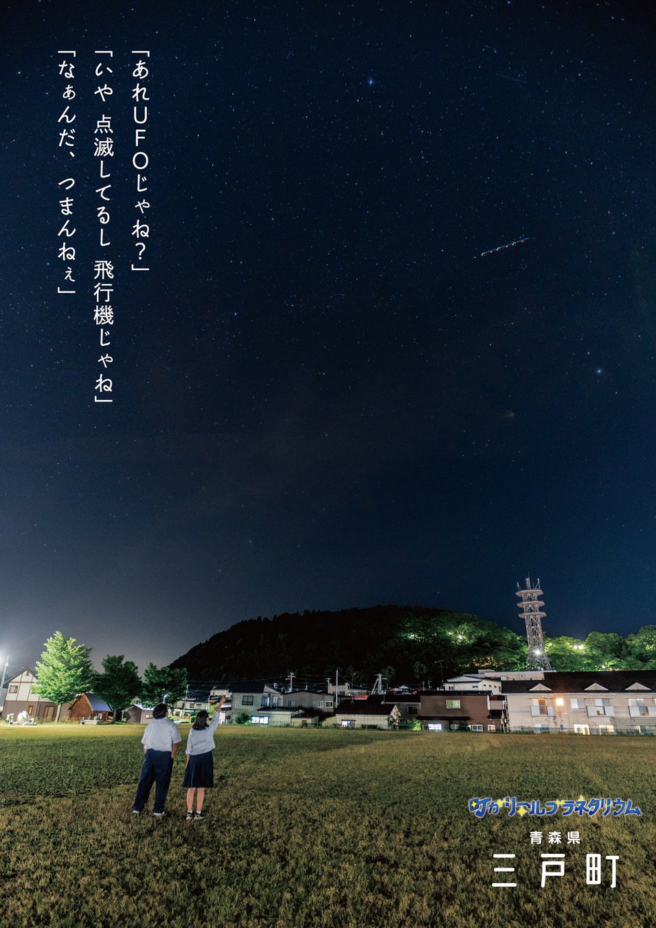 町の中心からでも星が綺麗に見える三戸町。昔、こんな会話したなという思い出話を手掛かりにキャッチコピーを作成しました。実際に撮影中に謎の光が夜空を横切りました・・・