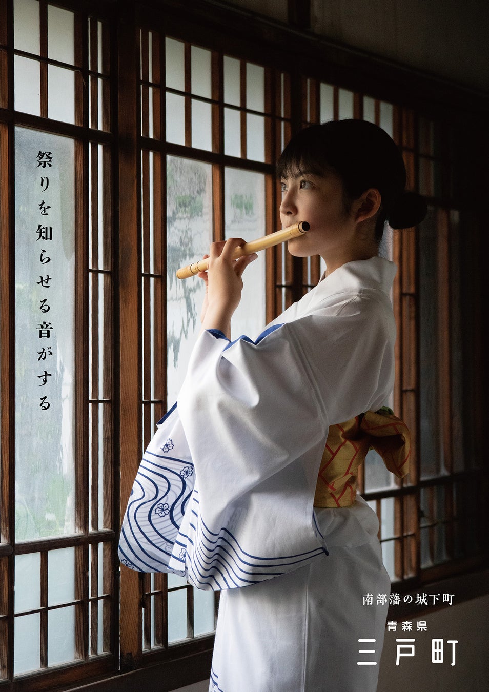 三戸町は南部藩の城下町で祭りが盛んです。祭り好きな高校生が自らモデルになっています。