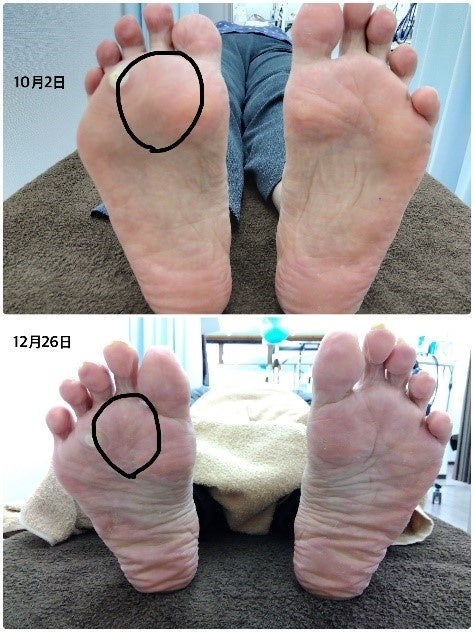 ② 足裏の第二趾や第三趾のつけ根にタコがある。