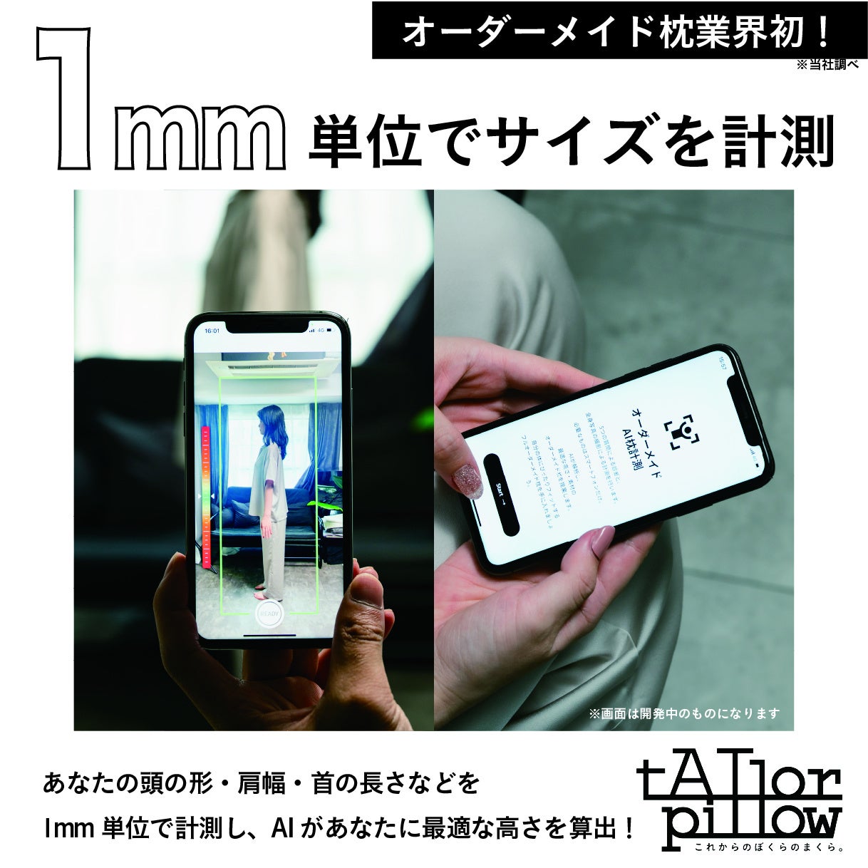 「SHING ORDER MAKURA」は、睡眠の質を向上させるためにお客様の体型に合わせた完全にカスタマイズされた枕を提供します。このために、アメリカにてAI計測領域で実績のある3DLOOK社の先進的なサービスを導入しています。