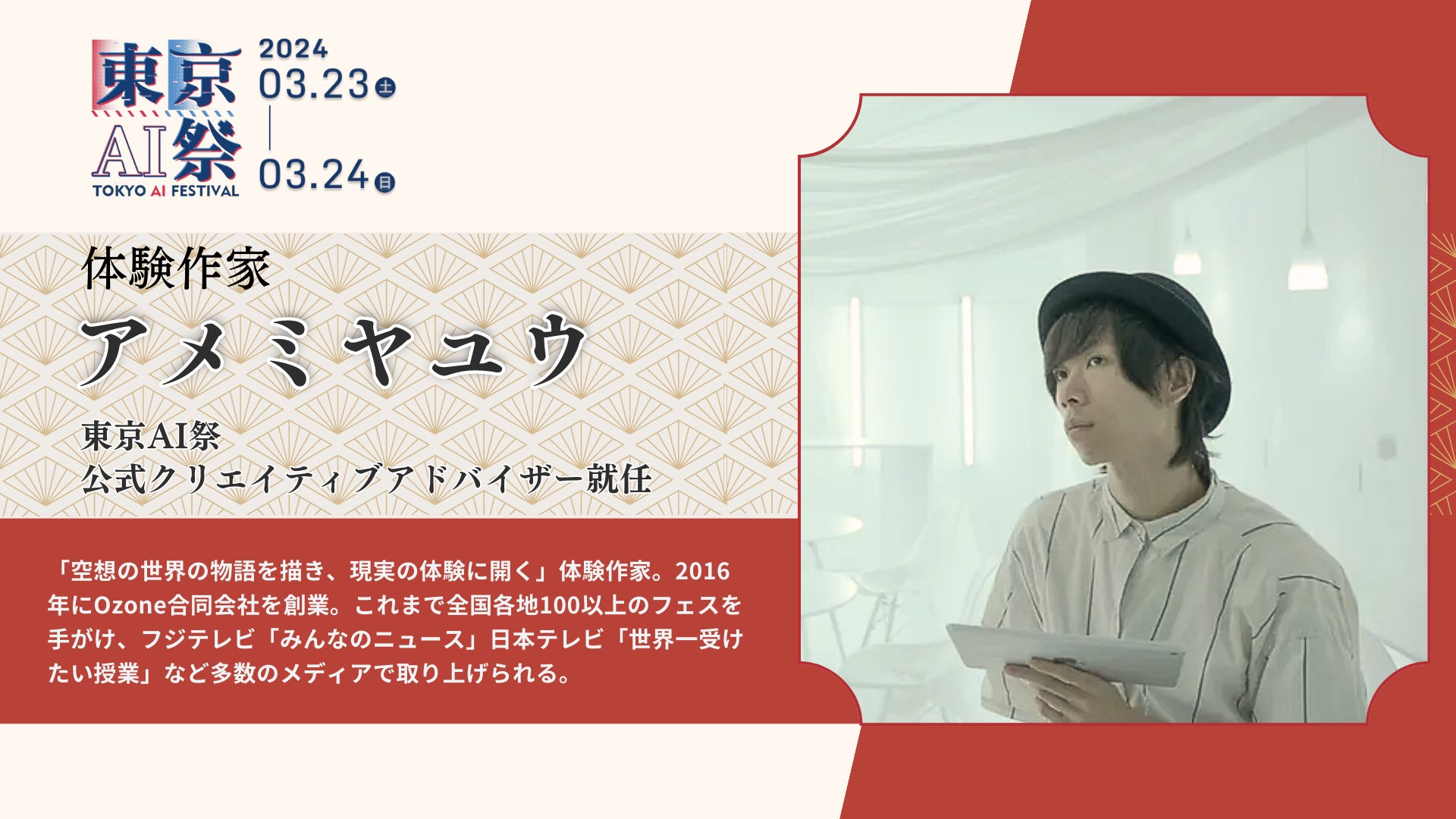 生成AIスタートアップカンファレンス「東京AI祭」クリエイティブアドバイザーに、2024年1月より体験作家のアメミヤユウ氏が就任予定