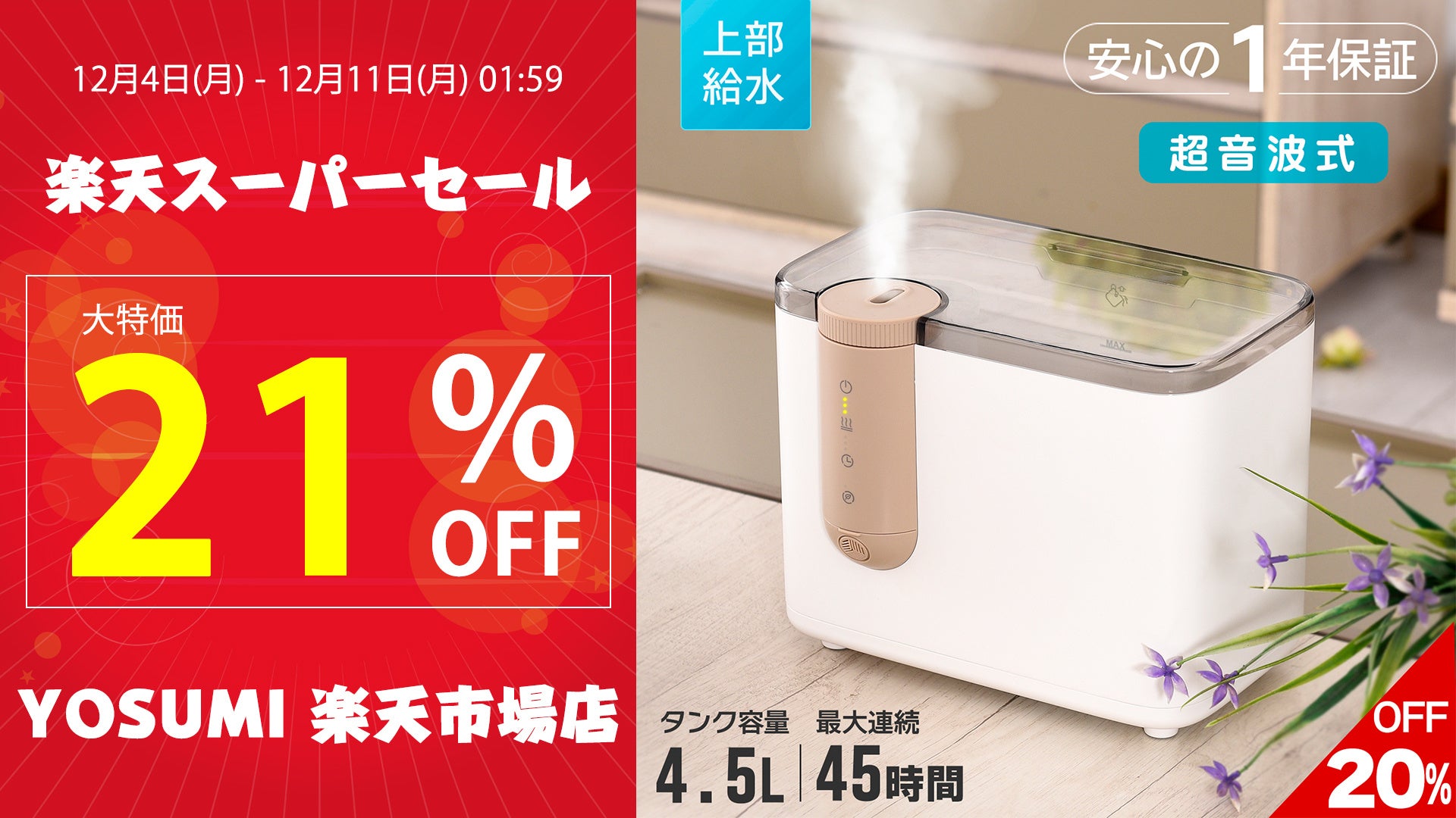 \RakutenスーパーSALE!大特価21%OFF/4.5L大容量超音波加湿器 インテリアに馴染むおしゃれデザイン 上給水&お手入れ楽々 冬の乾燥対策