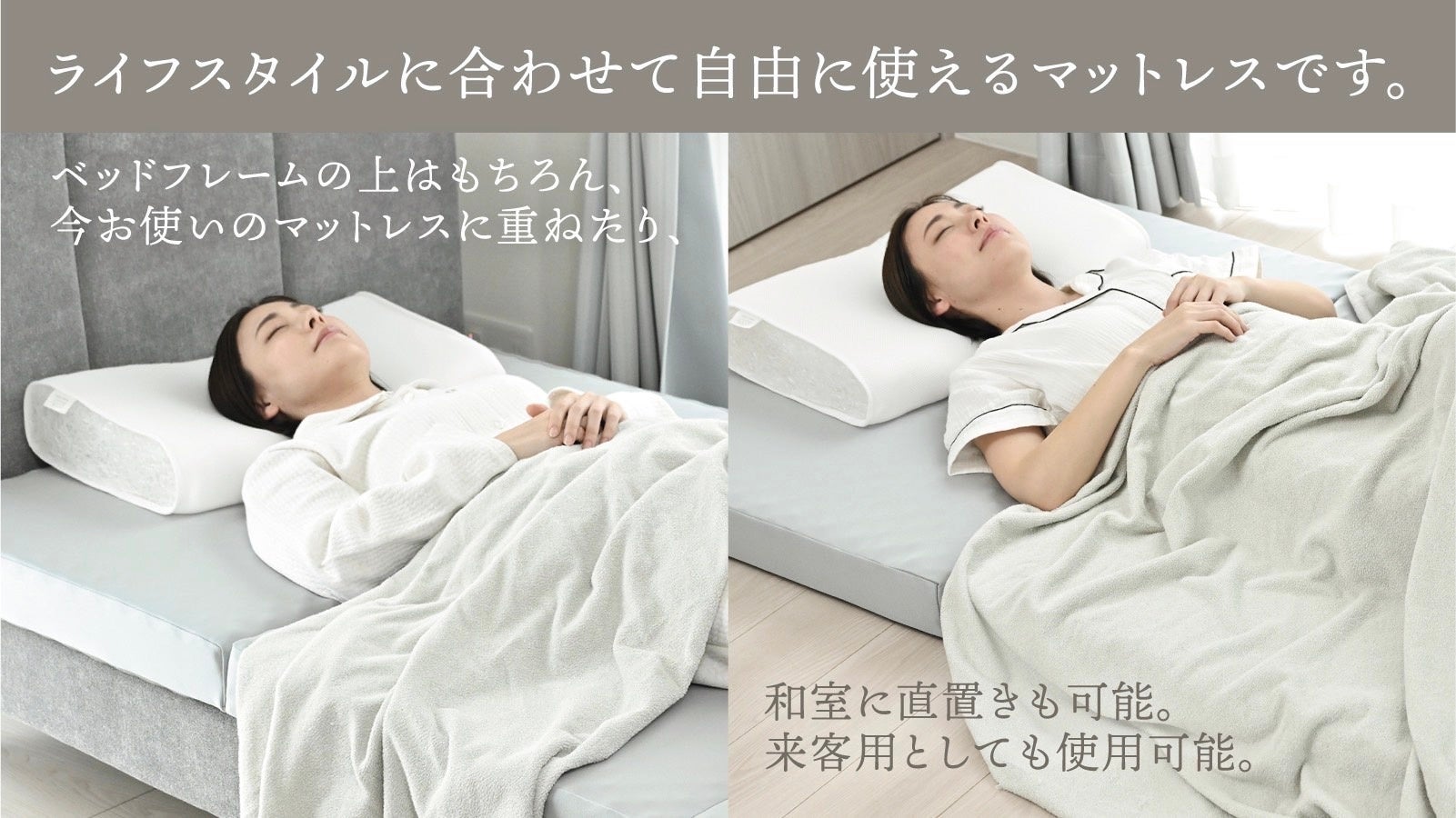 質の高い睡眠を届けるために生まれた新ブランドです。高性能な素材選定と、日本の四季や生活スタイルにフィットする設計思想で、毎日の「眠る時間」を豊かにしていきます。