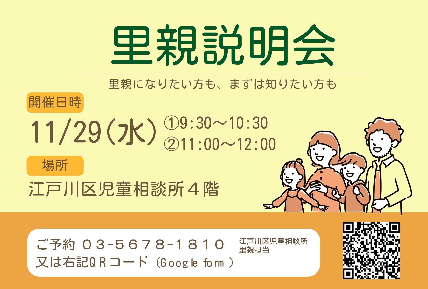 ・11/29(水)9:30~10:30、11:00~12:00 里親説明会@江戸川区児童相談所★