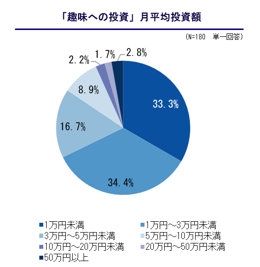 「趣味への投資」では、「推し活」が第1位。また、投資金額の1か月の平均投資額の最高額は100万円以上。