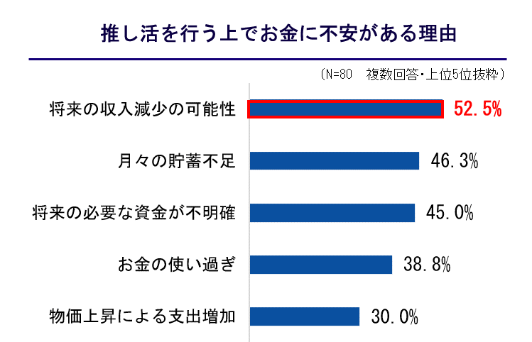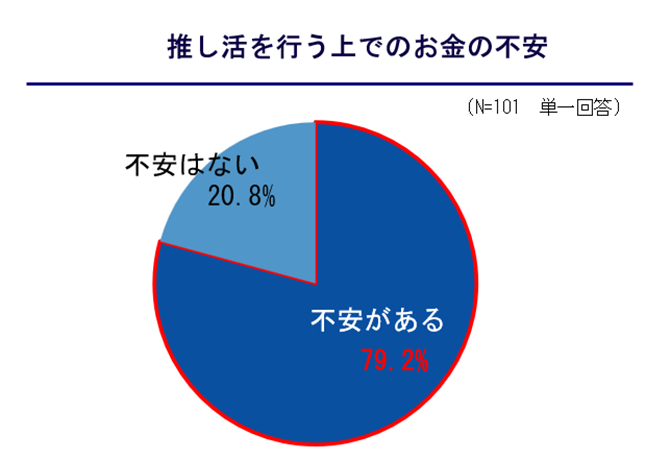 推し活をしている人の約80%は「お金に不安を感じている」と回答。特に、将来の収入の減少を懸念していることが明らかに。