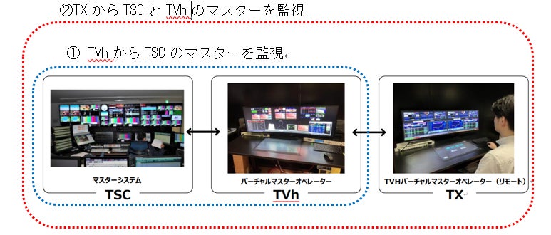 ① VMOをTVhに設置してTSCとTVhのマスター室をCGで再現。TVhにあるパソコン上に