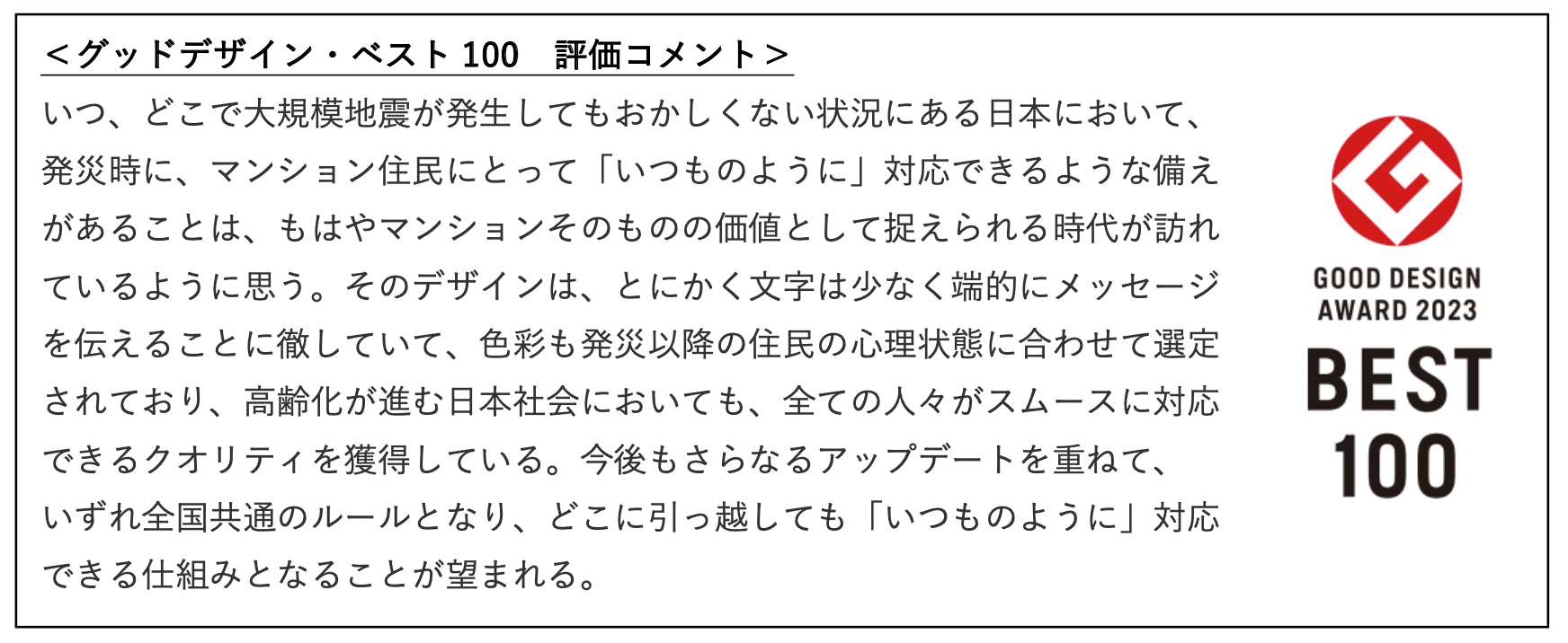 熊本地震・被災地の声から生まれた地震対応箱「マンション地震対応箱MEAS」「グッドデザイン・ベスト 100」「グッドフォーカス賞〈防災・復興デザイン〉」受賞