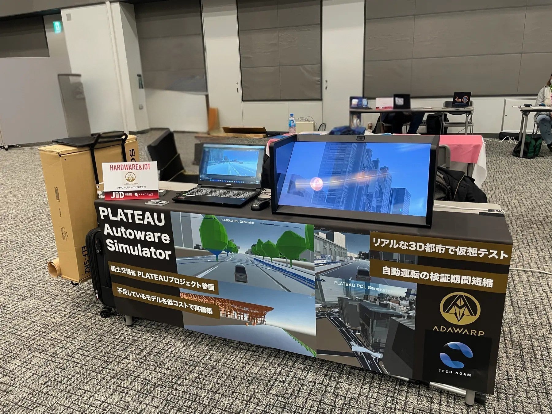 空間コンピューティング技術開発を行うTechNoam株式会社(代表取締役 園田 康記)とアダワープジャパン株式会社(代表取締役 安谷屋 樹)は、2025年2月28日に開催された「JID 2025 by ASCII STARTUP」に共同出展しました。本展示において、国土交通省が推進する3D都市モデル整備プロジェクト「PLATEAU」のデータと、自動運転オープンソースソフトウェア「Autoware」を活用した自動運転シミュレーション技術を披露しました。