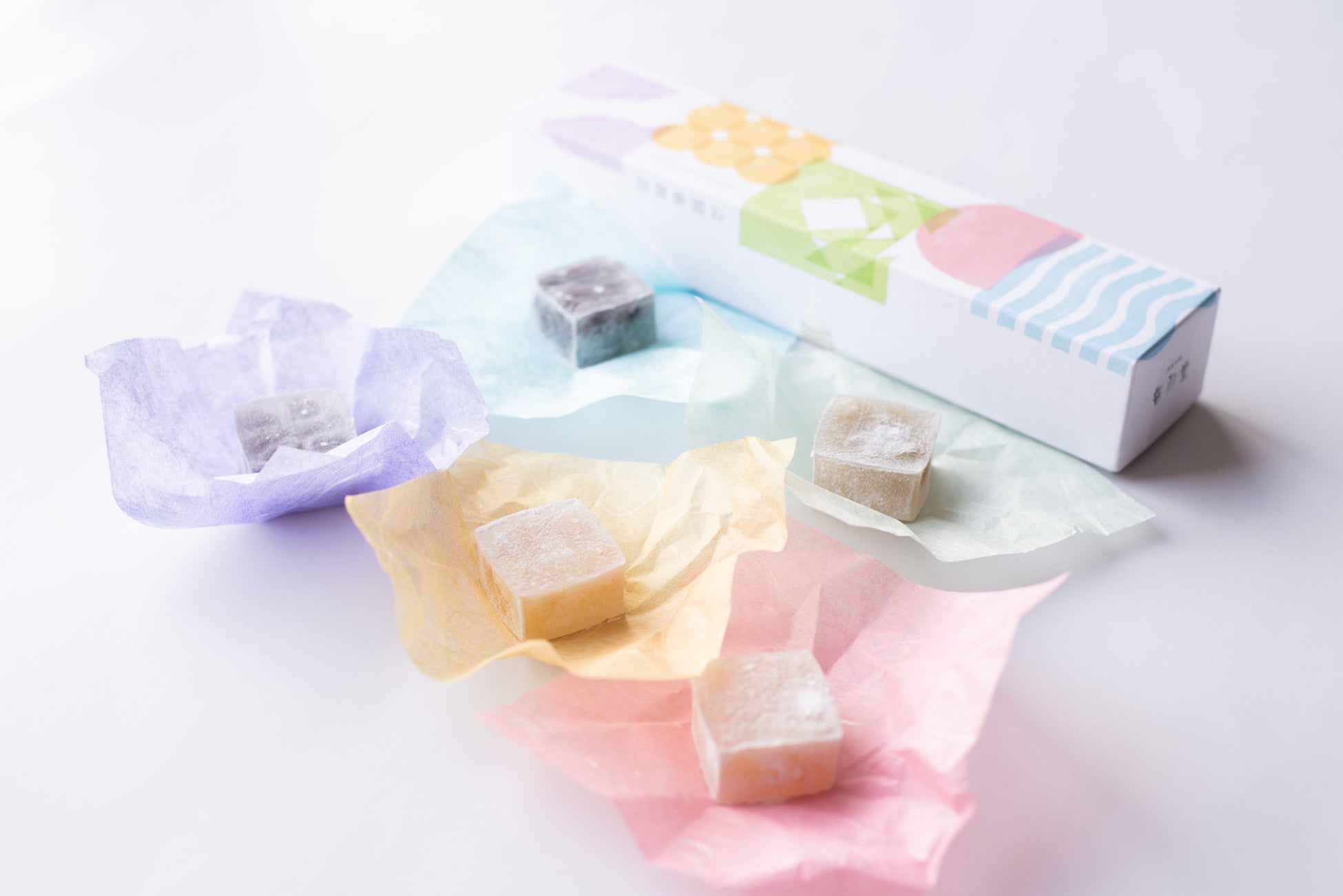 ふっくら炊いた大粒の丹波産大納言小豆を寒天と砂糖で包んだ加賀紫雲石はカリッとホロッとしてい
