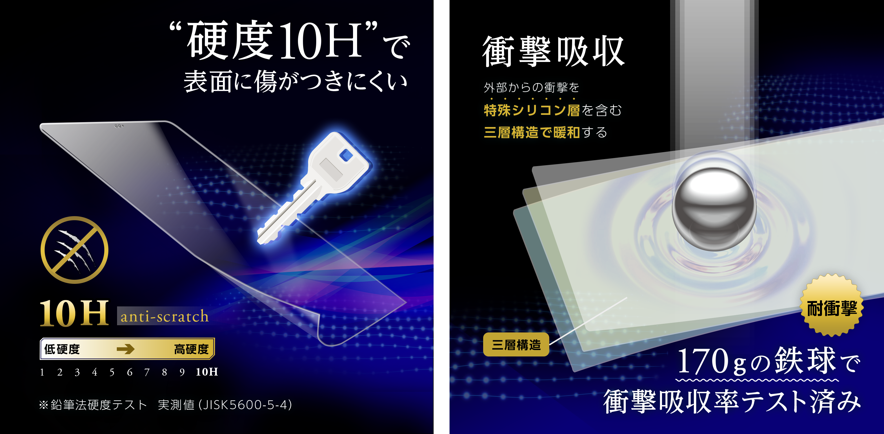 ・傷が付きにくい表面硬度10H(JIS K5600-5-4)
