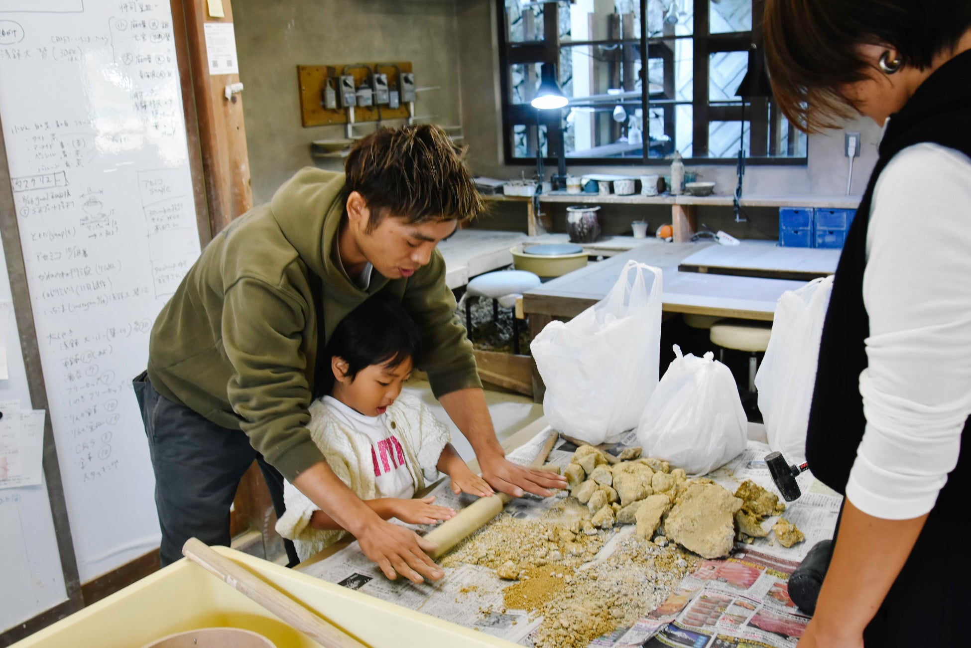 陶泊の楽しみは、陶芸の工程が体験できることでもあります。教えてくれるのも、現役の職人。また参加者の要望に寄り添い、例えば土堀や粘土作りといった作陶のプロセスも体験することができます。