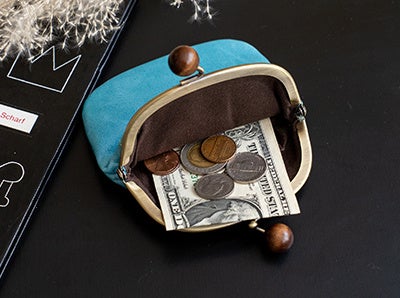 シンプルな形のお財布です。がま口の中にはたっぷりの小銭や、二つ折りのお札を収納可能。カードポケットもあり、コンパクトでもお財布としての機能がしっかり備わっています。