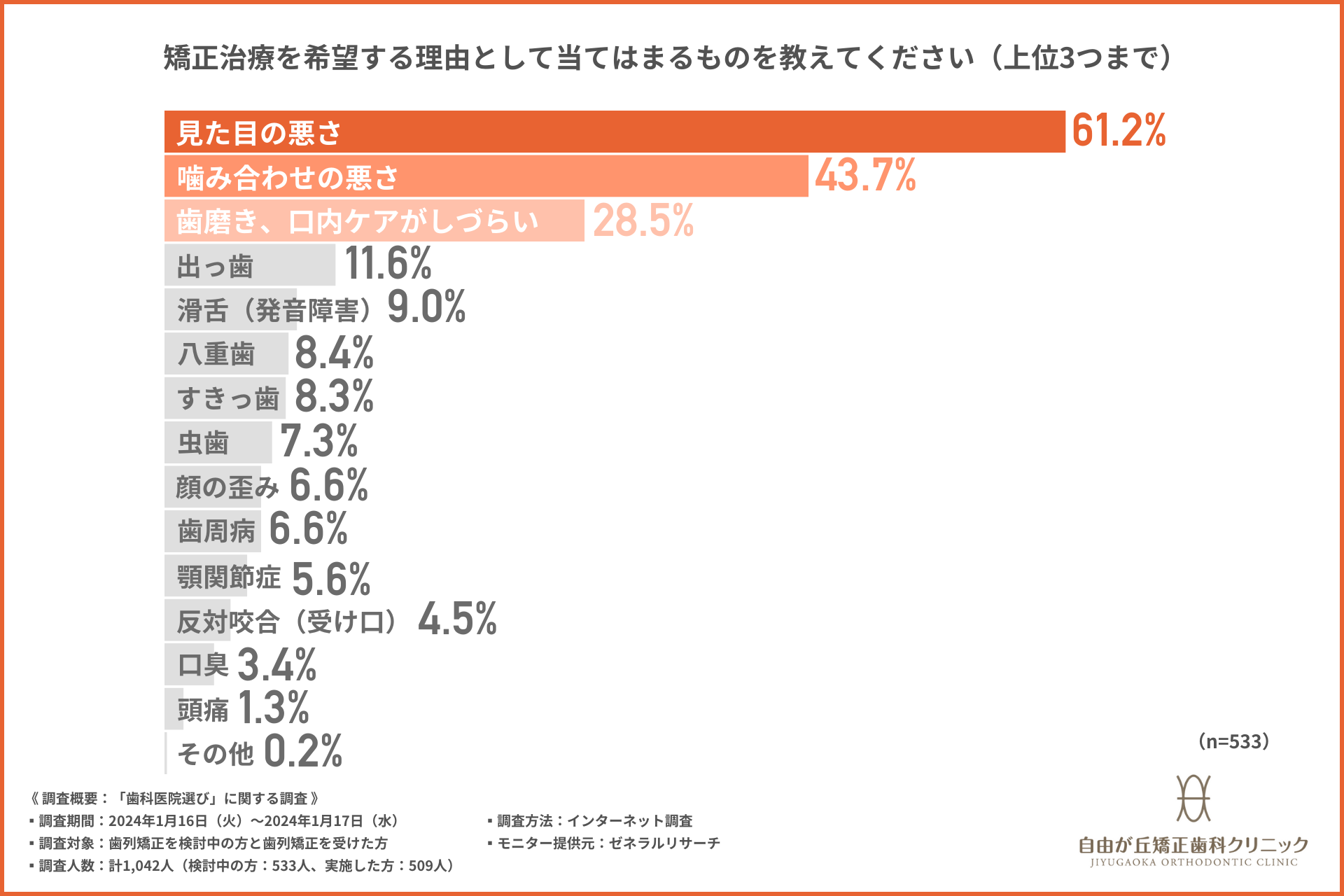 矯正治療を希望する理由第1位は【見た目の悪さ】矯正歯科選びで重視することは?