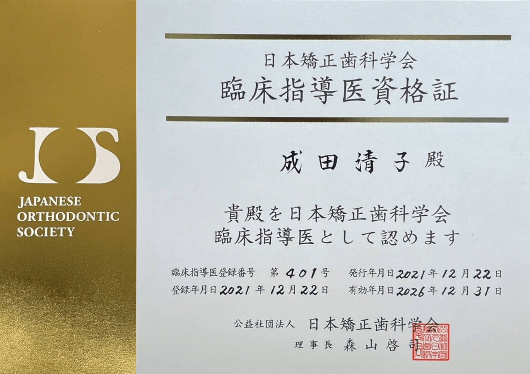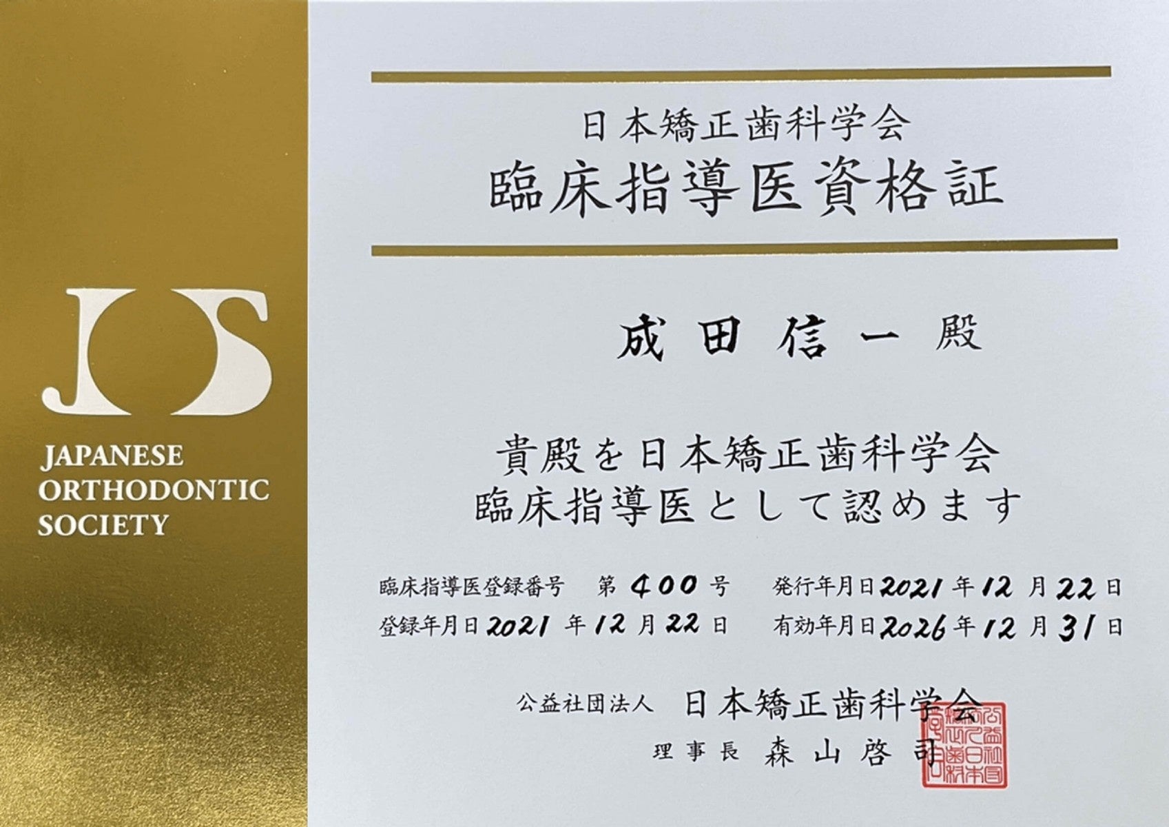 日本矯正歯科学会認定医の中で特別に技術と経験が優秀であるものを選抜して、日本矯正歯科学会臨床指導医という制度を敷いています。資格の取得には、下記のような非常に厳しい条件が付けられています。