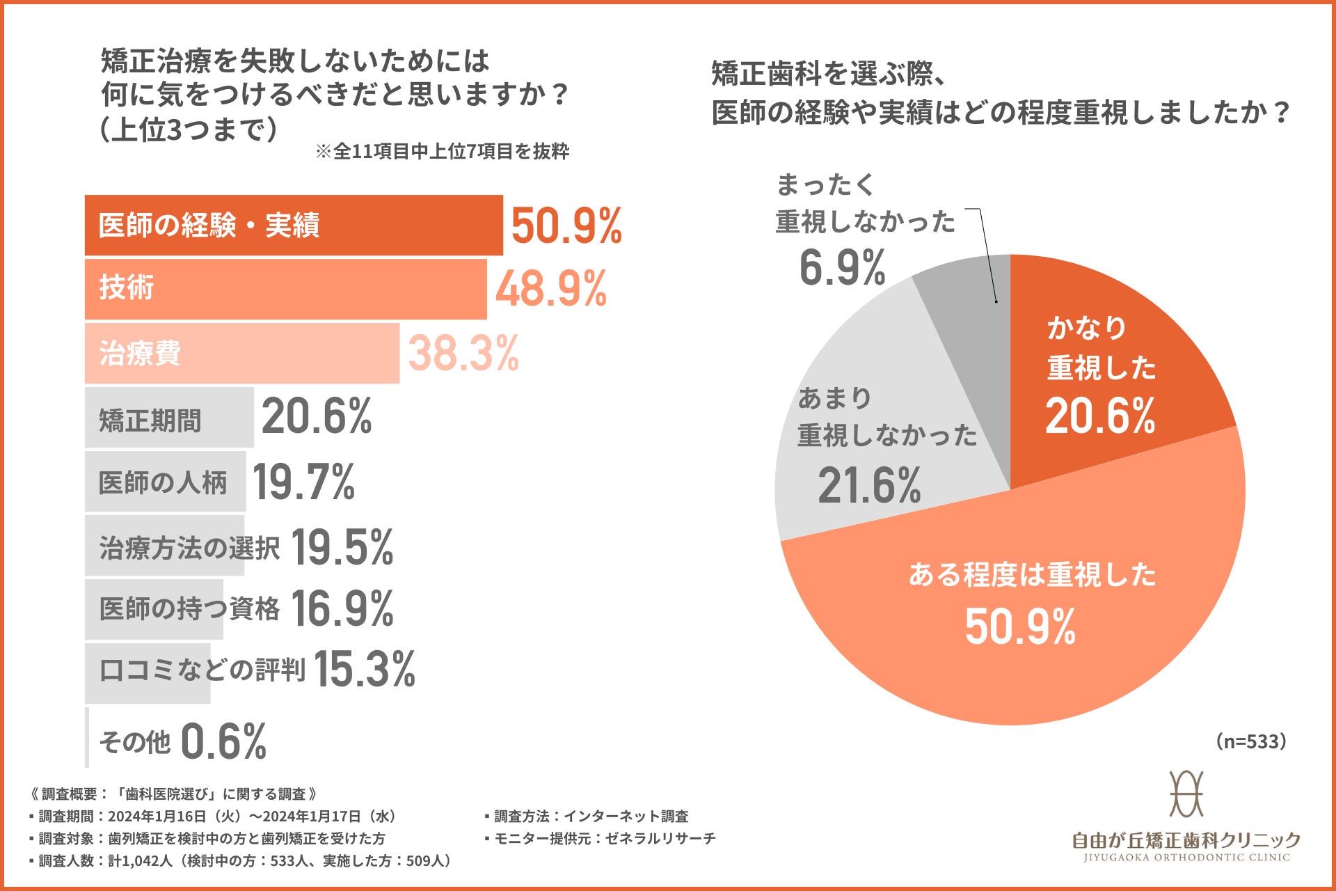 矯正治療に失敗しないためには何が必要?医師の経験や実績を重視したという方が約半数