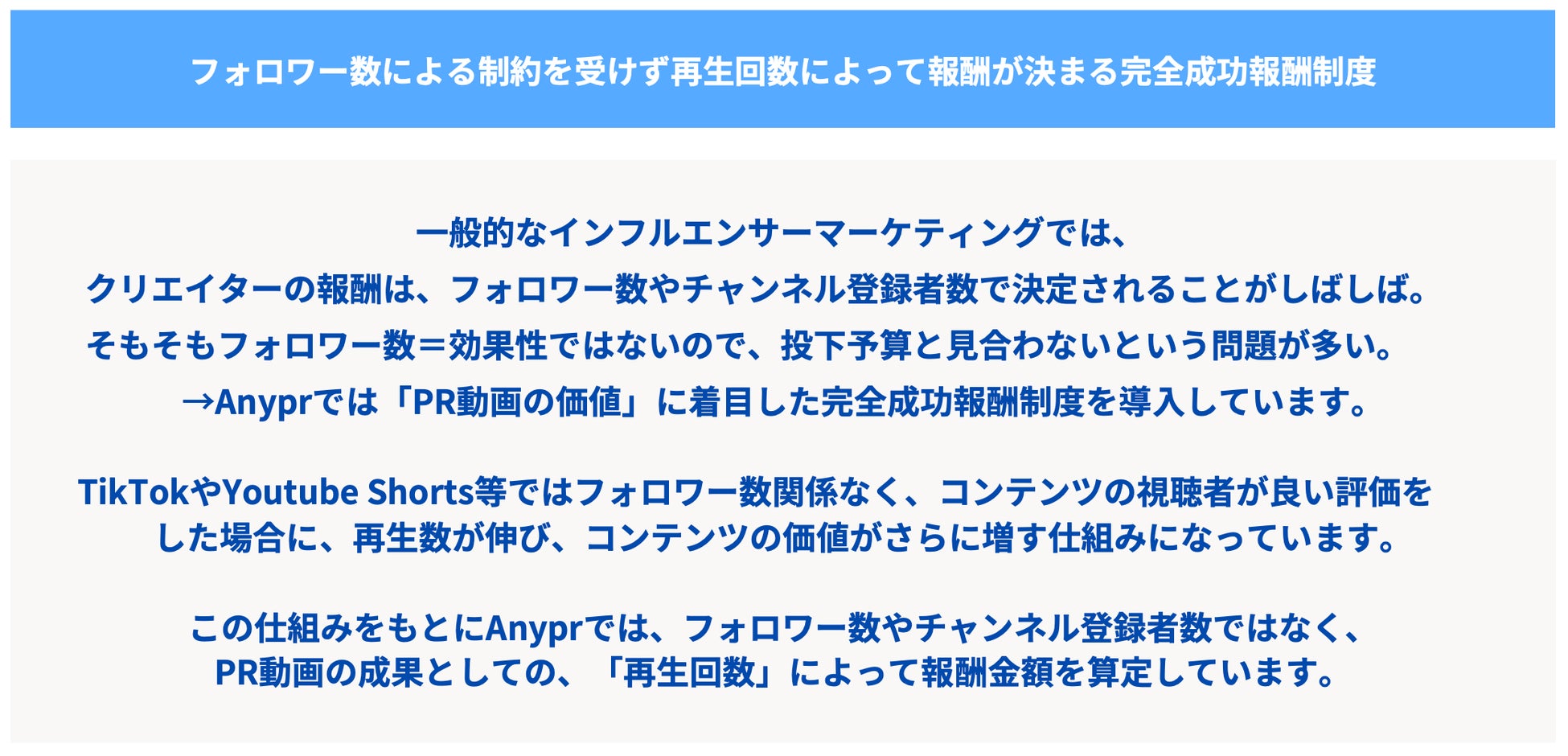 Anyprの特徴「PR動画のリーチ数である再生数」に着目した成果報酬制度