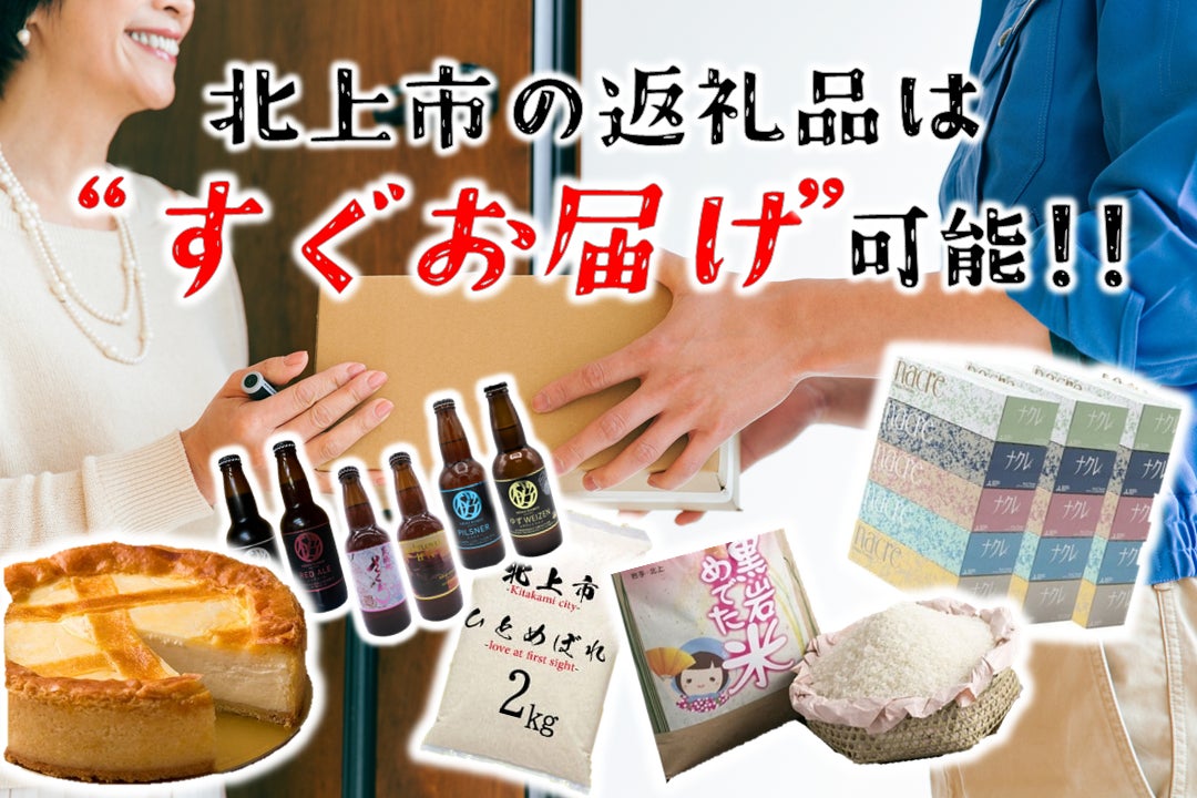即日発送となるお礼の品は、北上市の地場産品である精米やクラフトビールなど7点が対象で、翌日お届けの対象エリアは東北・関東・中部です。(注2)