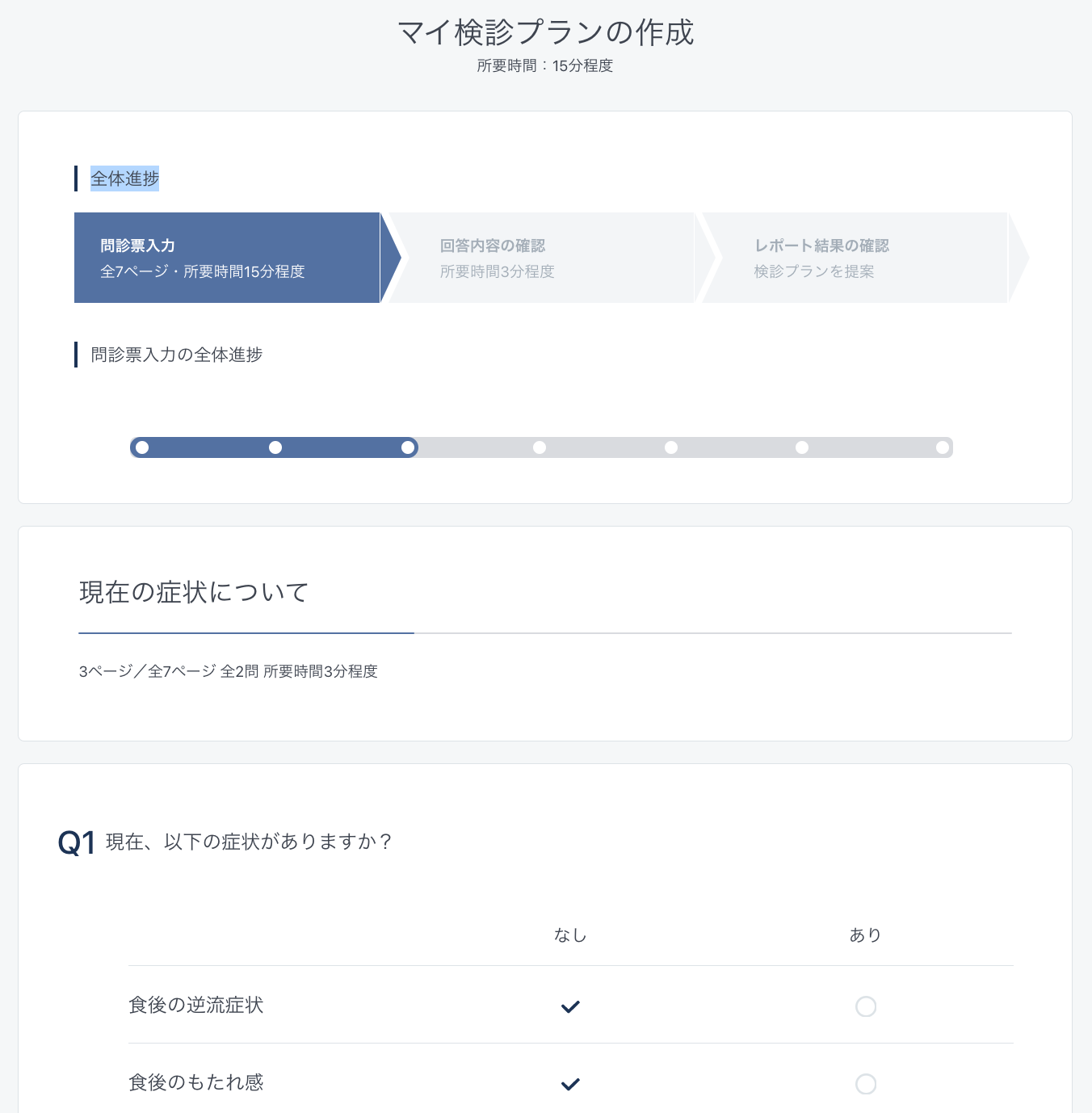 がん検診レコメンドサービス「マイ検診プラン」は、Web上で問診に回答するだけで、個人が有するリスク因子に応じた「がん検診受診プラン」を即時に、そして手軽に得ることができるITプロダクトです。科学的根拠を持つ医学的なアルゴリズムに基づいてがん検診を推奨します。日本人の2人に1人が生涯でがんになる時代です。がんを自分ごととして考えた際に、何をすべきかわからない方にこそ試していただきたいサービスです