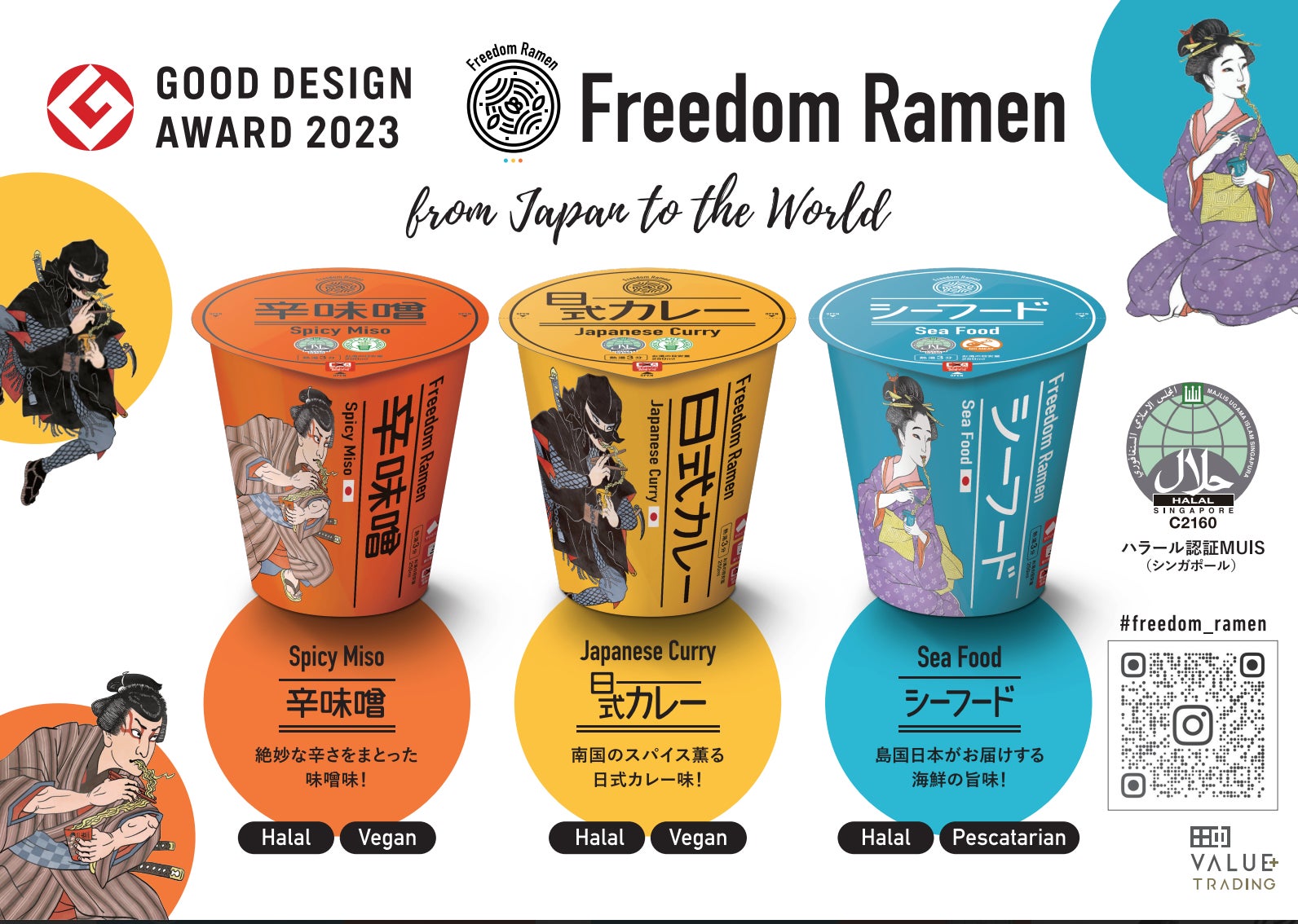 「Freedom Ramen」は、世界中の誰もが“食べられる・楽しめる”ことを目指した、シンガポールMUISによるハラール認証を取得し、100%植物性(辛味噌/日式カレー)およびえび由来成分を含む(シーフード)の3フレーバーを展開。ムスリム、ヴィーガン、ベジタリアン、アレルギー配慮が必要な旅行者にも対応できる“フードバリアフリー”商品として、すでに自治体や航空会社などでも導入が進んでいます。「防災備蓄 × 食の多様性教育 × インバウンド対応」の3軸を備えた、未来のラーメンです。