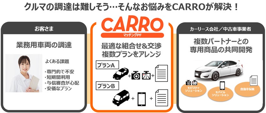 クルマのDXを推進するCARRO JAPANは、国内のカーリース会社と連携し、以下の特徴のサービスを全国の訪問看護ステーションに提供します。