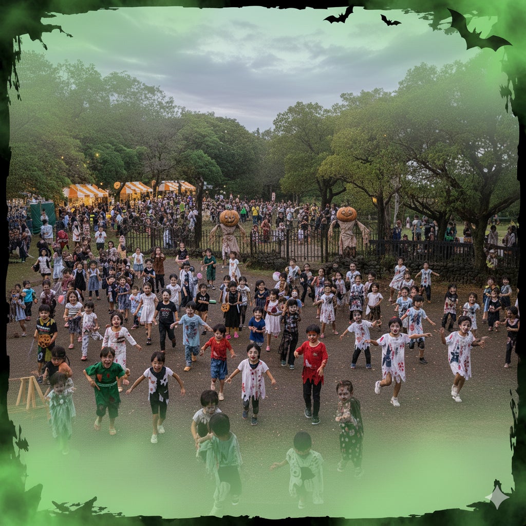 ハロウィンという広いテーマではなく、子どもたちにも馴染み深い「ゾンビ」に焦点を絞ることで、仮装の参加しやすさとイベントとしての一体感を高めます。