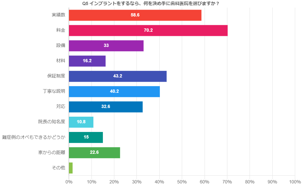 調査結果⑤ インプラントをするなら、何を決め手に歯科医院を選びますか? (複数回答可)