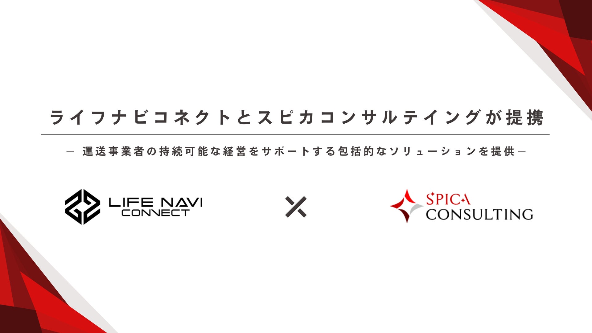 本提携により、ライフナビコネクトの運行管理や法令順守支援に関する現場密着型のサポートと、スピカコンサルティングのM&Aおよびバリューアップの専門的ノウハウが融合します。これにより、運送事業者が抱える経営上の課題に対して、より実効性の高い解決策を提供することが可能となります。