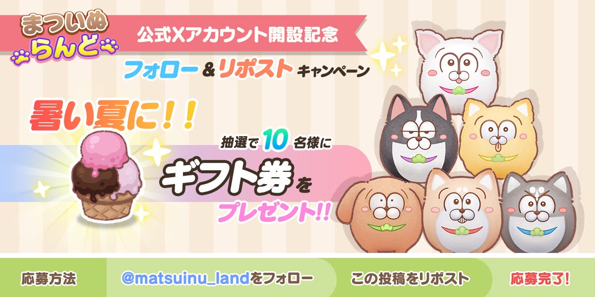 「まついぬらんど」公式Xをフォローの上、対象のポストをリポストしていただいた方の中から抽選で10名様に、アイスクリームギフト券をプレゼントいたします。