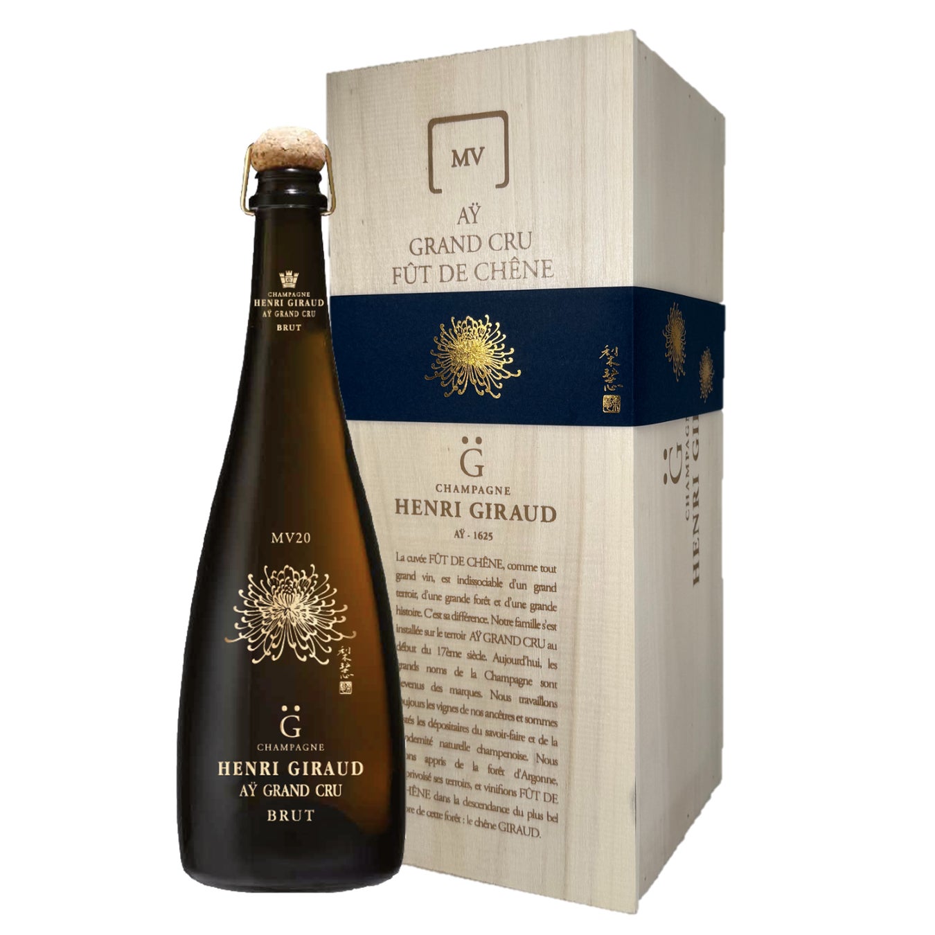 シャンパーニュ アンリ・ジローは、日本画家森田りえ子氏との特別なコラボレーションを通じて、日本の伝統文化とシャンパーニュの繊細さを表現した限定デザインボトルを発表します。日本の象徴的な花「菊」のデザインが刻印された「フュ・ド・シェーヌ MV20」を2025年5月20日に400本の数量限定で販売いたします。
