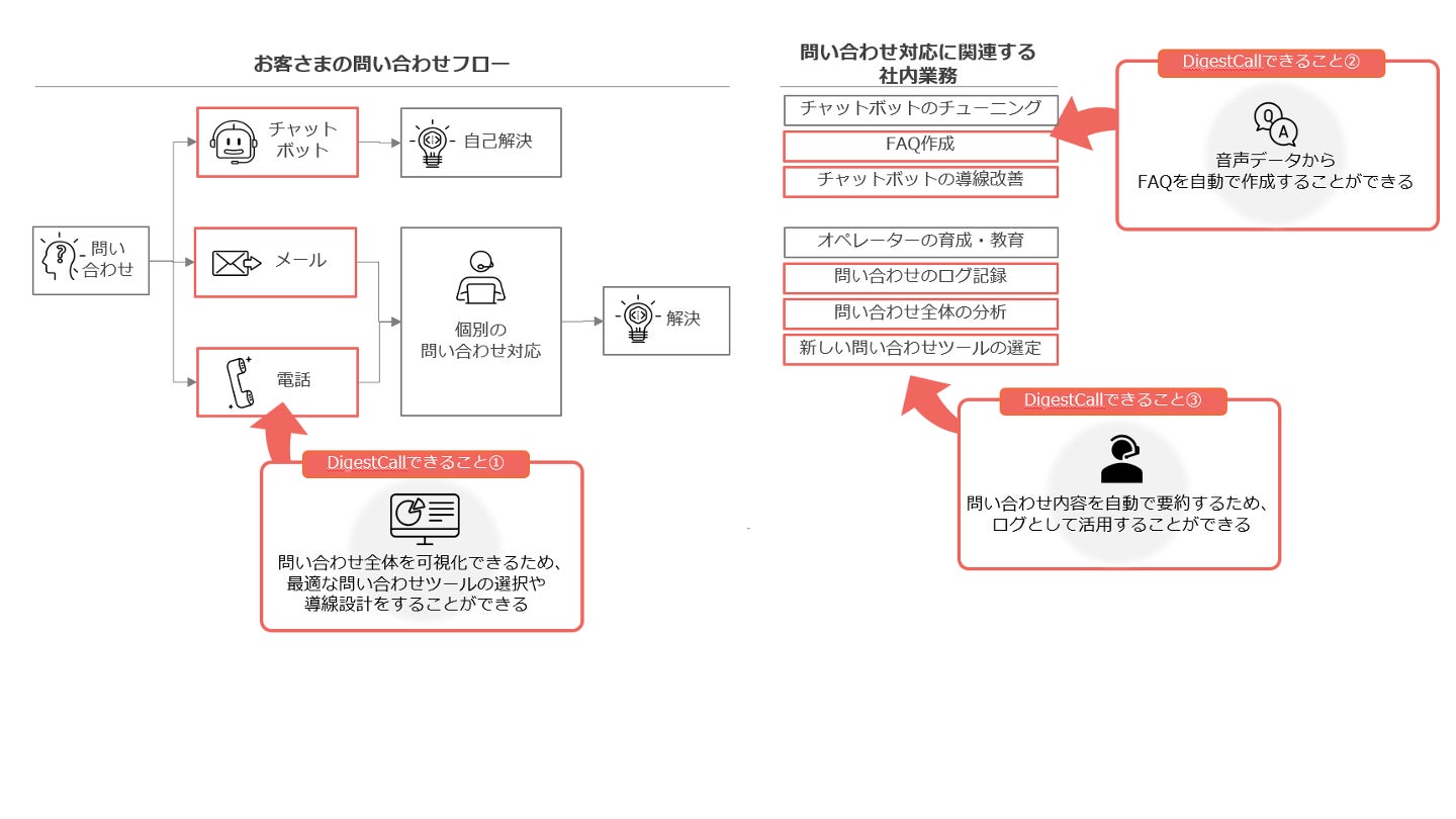 問い合わせ全体の分析やオペレーターのログに活用することで、社内業務効率化を実現することができます。