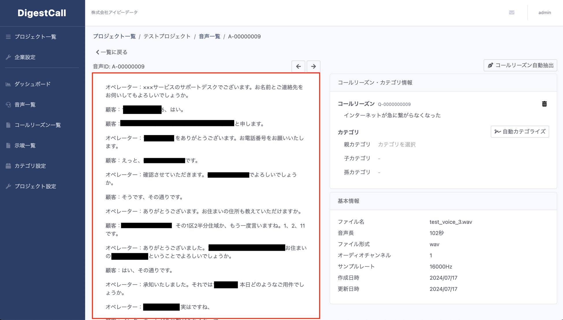 株式会社アイビーデータ(本社:東京都渋谷区、代表取締役 鈴木 航介、以下当社)は、ChatGPT搭載型の自動VOC分析サービス「DigestCall」において、①自動FAQ作成機能②話者分離・辞書登録機能をリリースしました。