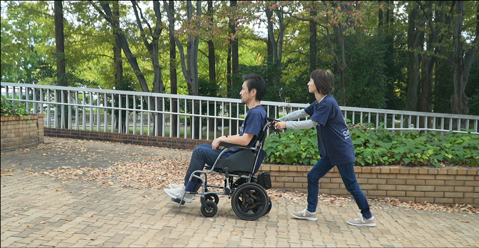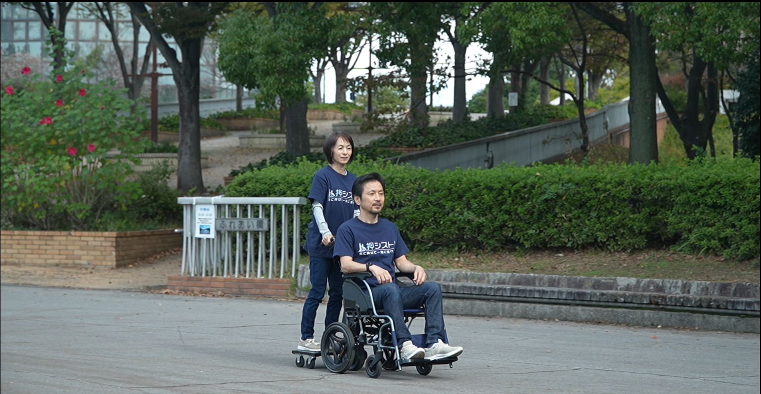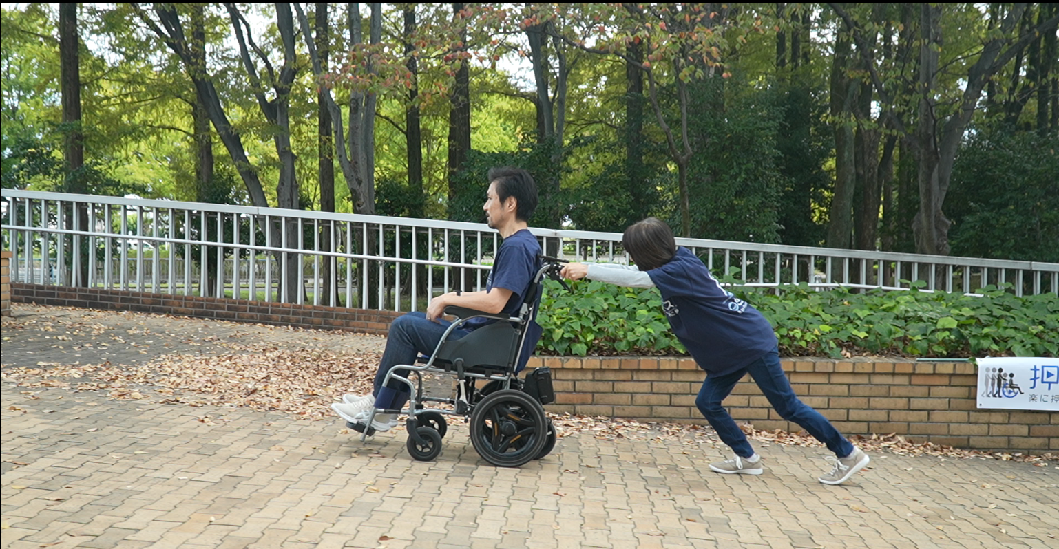 押シスト!®は、車いすを「押す」ことを「アシスト」する駆動アシスト電動装置で、普段使いの手動式車いすに簡単に取り付けることができて、車いすを『楽に押せる』ようになります。例えば、上り坂で車いすを押して上ると、その違いがよく分かります。さらに、車輪付きボードを取り付けて車いすを押す人がその上に乗って一緒に移動することもできます。車いすを楽に押せると、車いすに乗る人も押す人に外出を気兼ねなくお願いすることができます。車いすを押す人も楽に押せたり一緒に乗れたりすると、車いすに乗る人を気軽に外に連れ出すことができます。押シスト!®は、車いすを楽に押せるだけでなく、楽しく外出ができて車いすに乗る人も押す人も笑顔が増えて明るい社会を目指して開発されました。