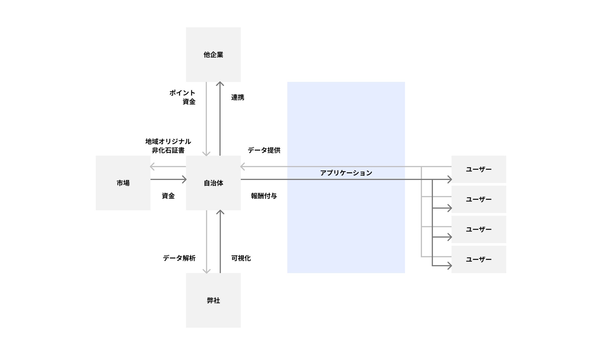 これらの現状を解決するために自治体と提携し脱炭素量の可視化アプリを提供することで、実施地域内での脱炭素社会に向けた意識の改善と認知の向上を目指し、尚且つ、実現可能な脱炭素シティ化への支援を行います。