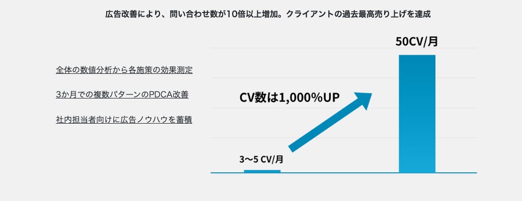 ◼️広告改善により問い合わせ数が10倍以上増加、過去最高売り上げを達成