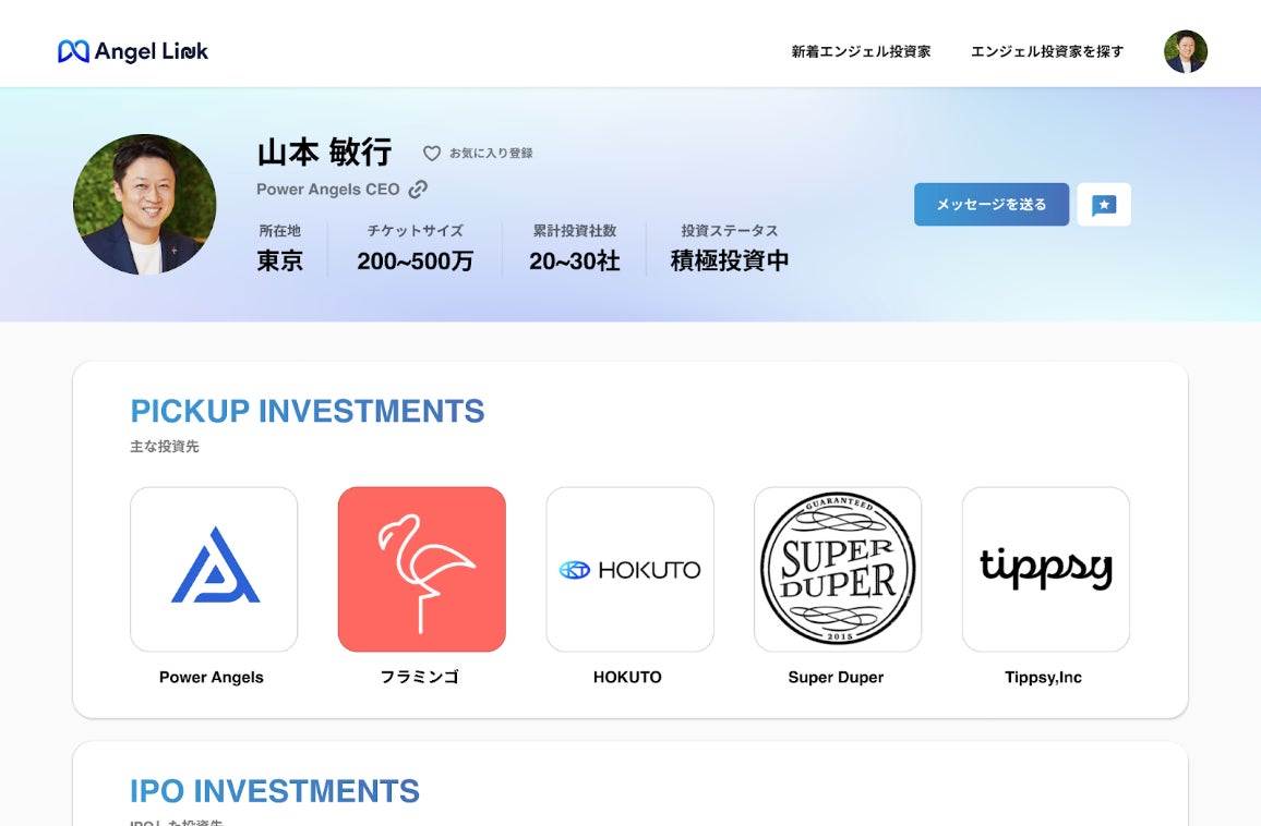 Angel Linkは掲載されている反社チェック済みのエンジェル投資家に対して、スタートアップが自社に適したエンジェル投資家と直接つながることができる完全無料の画期的なプラットフォームです。