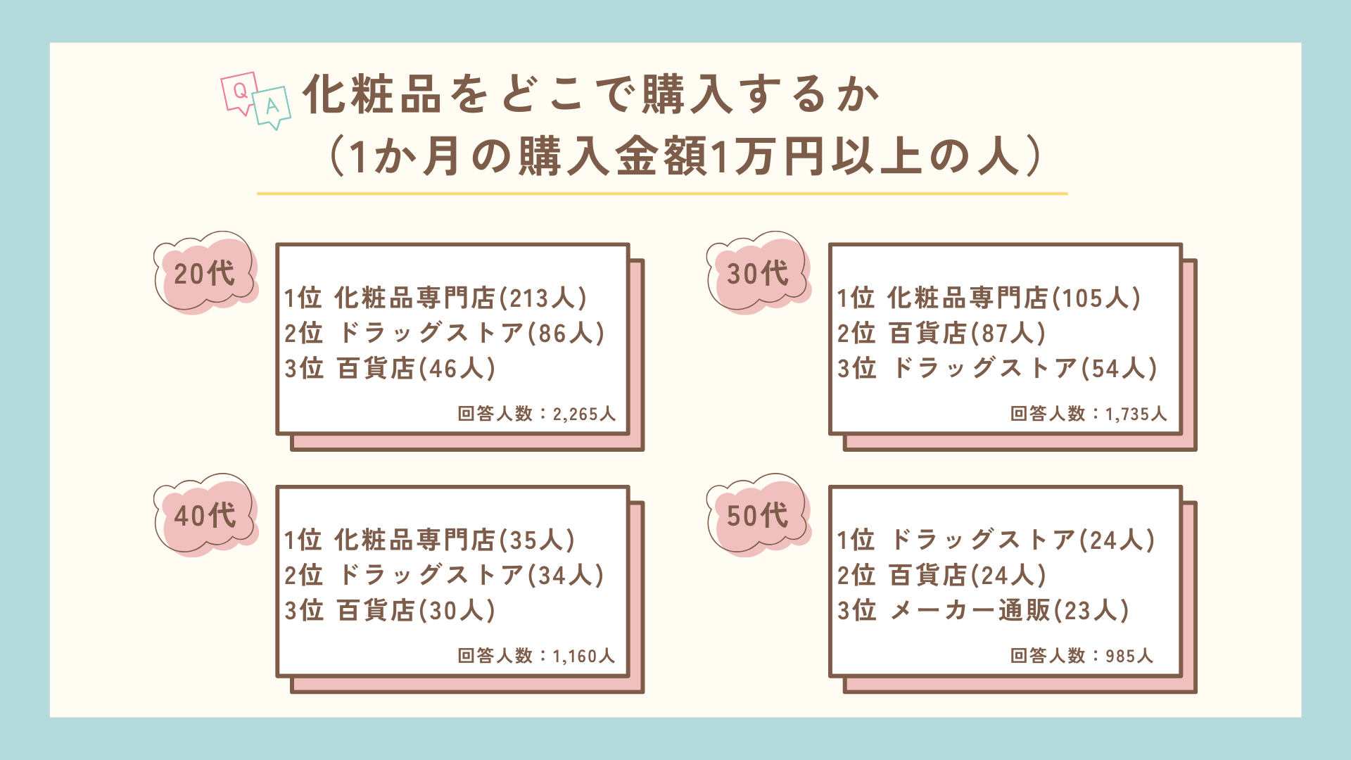 ドラコスが圧倒的人気!20~50代女性が化粧品を購入する場所と金額を調査