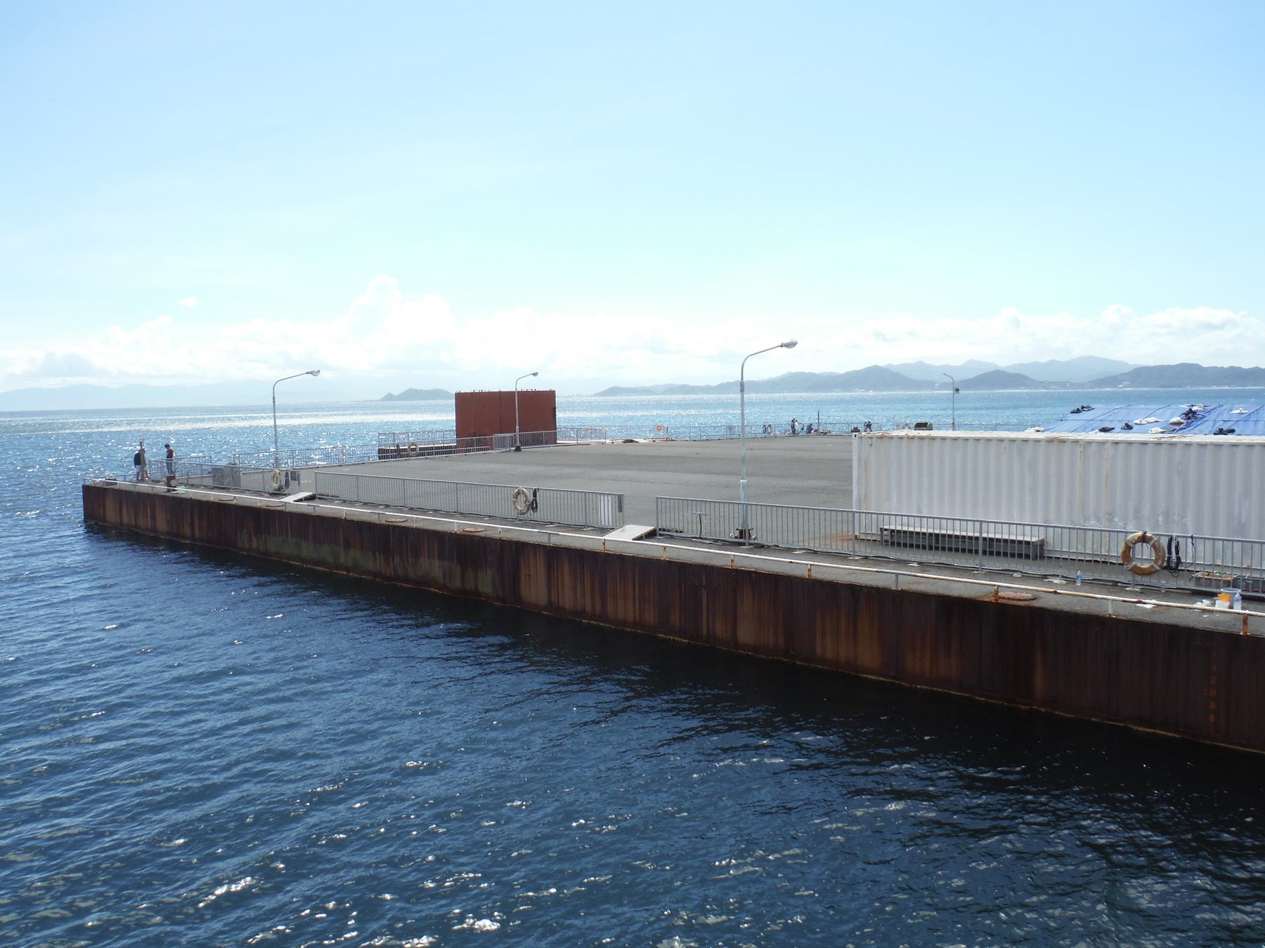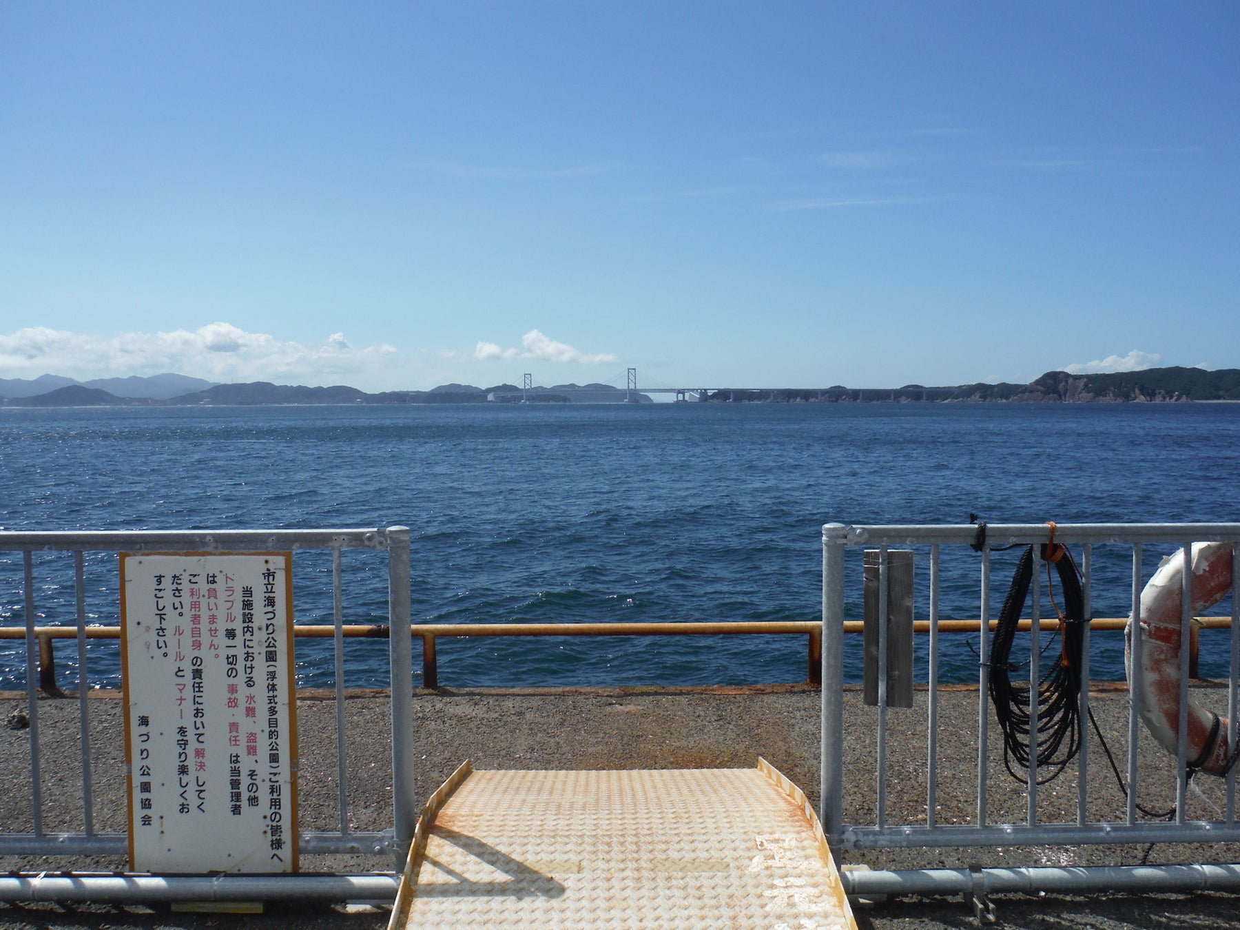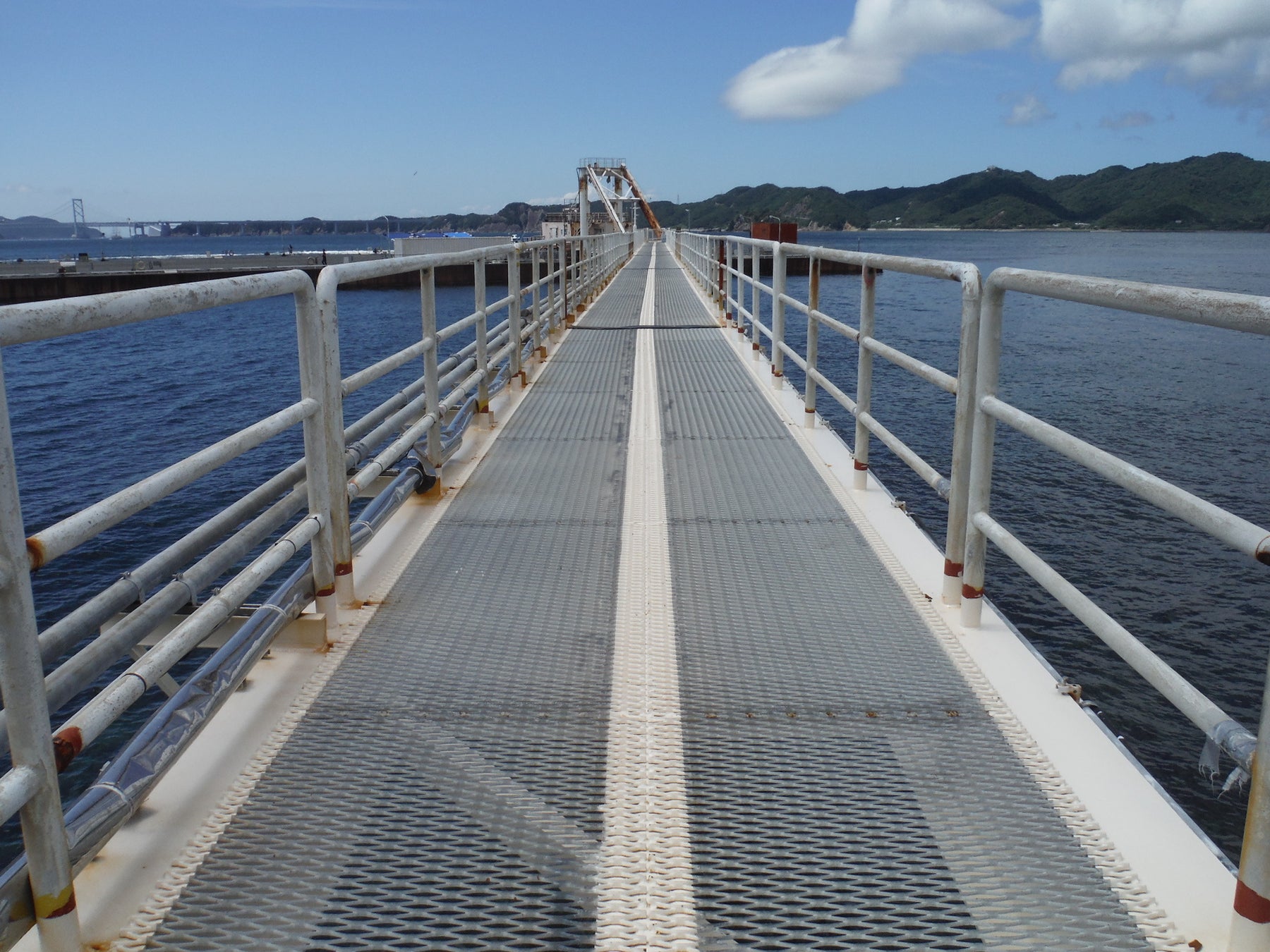 その一つが、南あわじ市「浮体式多目的公園(メガフロート海釣り公園)」であり、水産業並びに観光業の振興施策の一環として、平成13年に現在の阿万吹上町田尻地先の、既存の海釣り桟橋の先端部に浮体式の海釣り公園として設置されました。