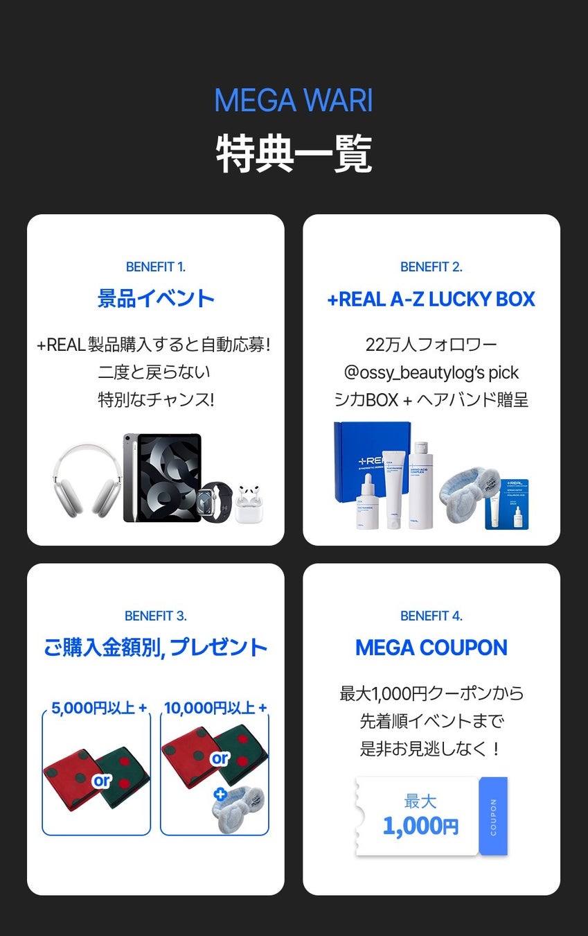 Qoo10の+REAL公式ショップにて、2023年11月22日から12月3日まで!