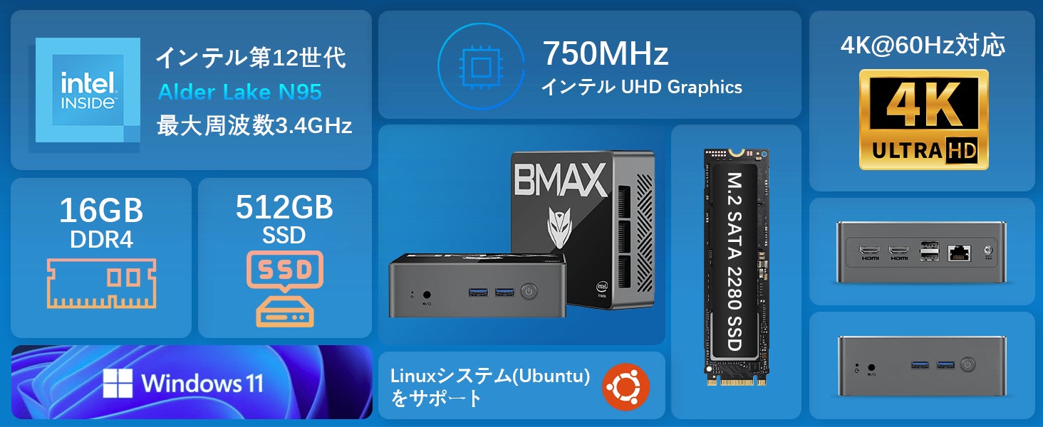 BMAX 「B4」Intel 第12世代 N95 小型パソコン,16GB+512GB,最安値22,400円!!