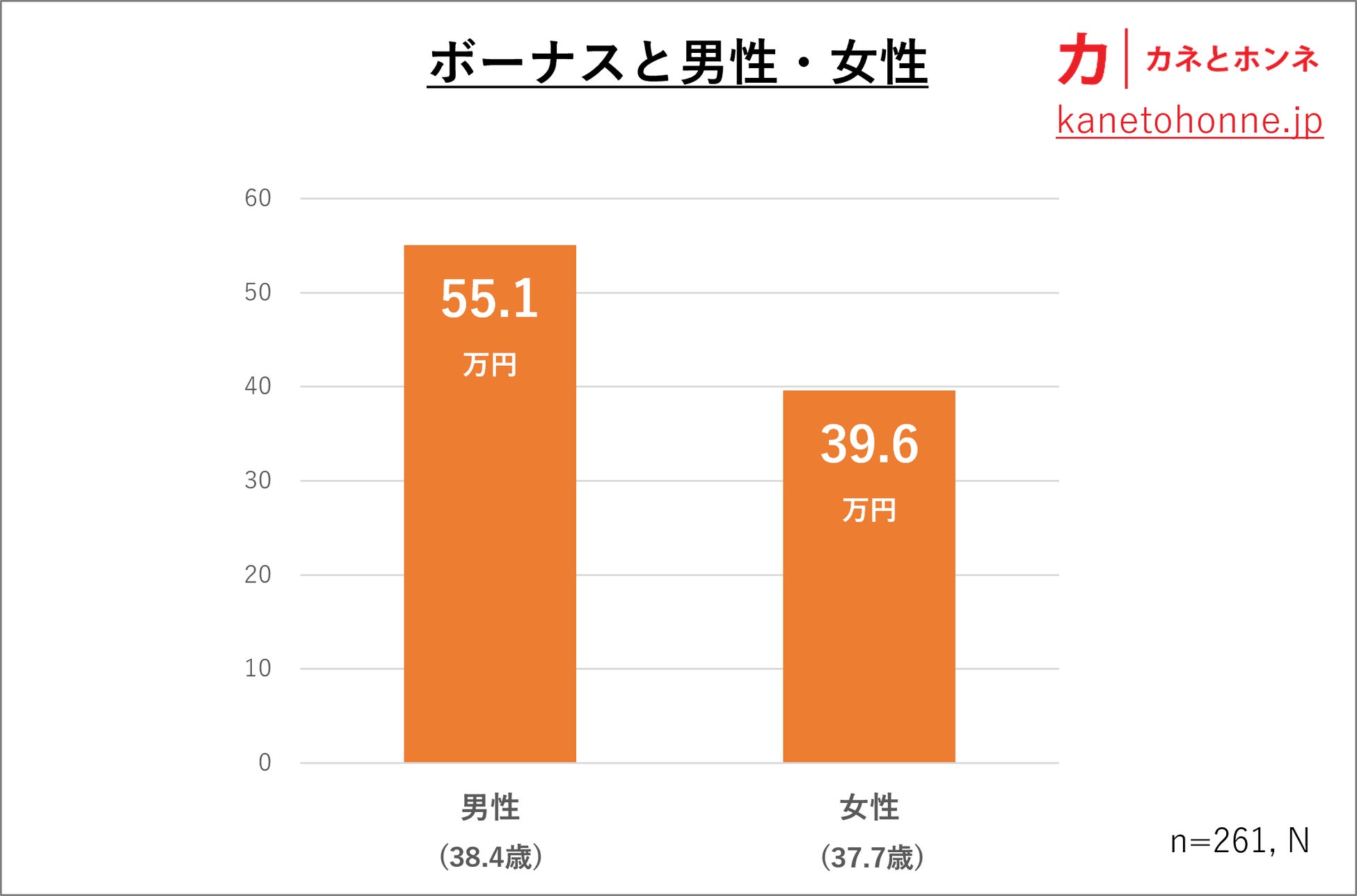 5.女性のボーナスは男性の約7割。その差は15.5万円
