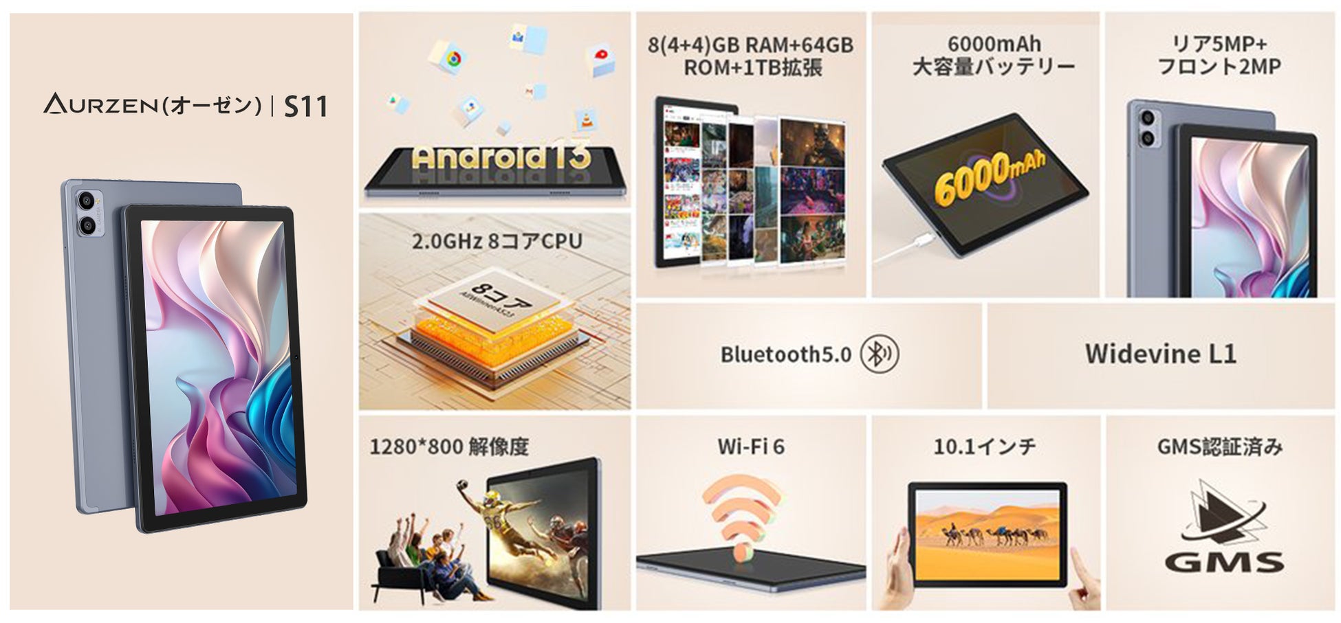 ・高度なセキュリティとプライバシー保護: Android 13とGMS認証により、安定したGoogleサービスとアプリの利用が可能。