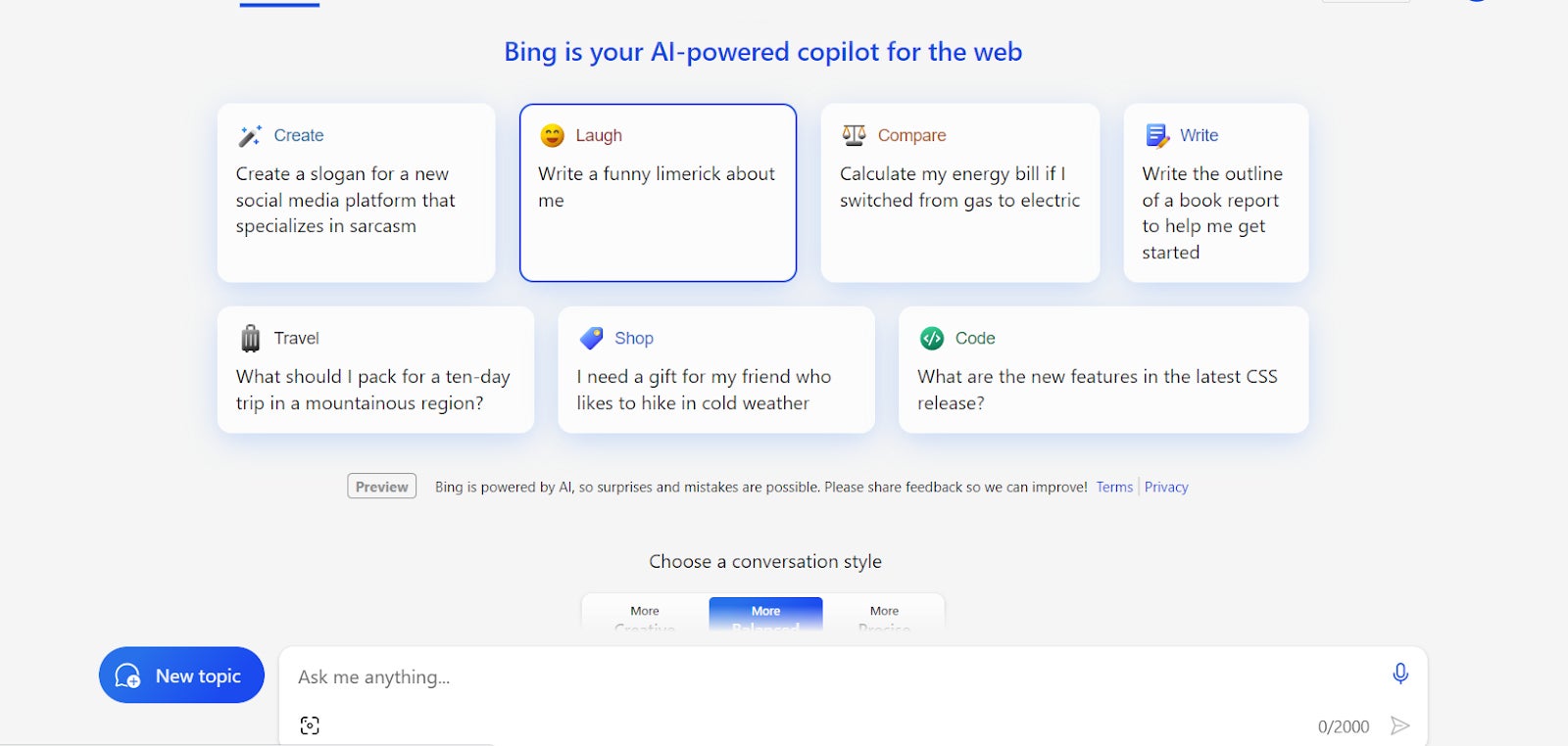 マイクロソフトの新しいBing https://www.bing.com/new も GPT-4 を搭載しています。Mircosoft は OpenAI の大株主の 1 つであるため、Mircosoft が訓練した GPT-4 のわずかに修正されたバージョンと呼ぶ方が適切でしょう。 Bing の大きなメリットは、 Skype にすでに統合されていることです。これにより、合理化された AI チャット 環境を求めるユーザーにとってアクセスしやすく、使いやすいものとなっています。