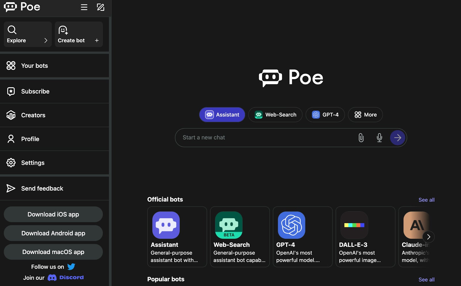 Poe.com https://poe.com は、GPT-4 に類似したAIモデルを含むさまざまな AI モデルと対話できるようにする独自のプラットフォームです。毎日更新可能な無料モデルを提供し、さまざまな AI テクノロジーと関わり、比較、分析する機会を提供します。 Poe.com は複数の AI モデルとチャットできる柔軟性を備えているため、さまざまな AI テクノロジーの機能を 1 か所で調査および比較したい人にとって、興味深い選択肢となっています。