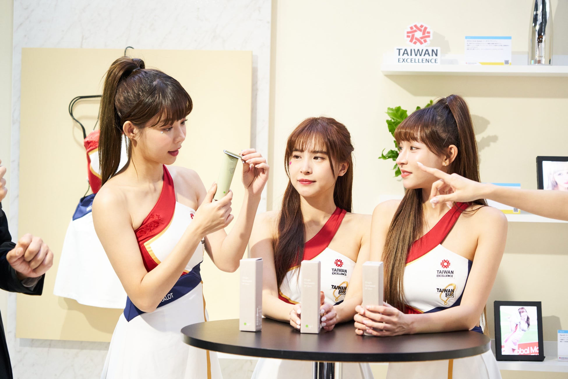 イベント初日である11月9日(木)は、「台湾エクセレンス賞」の受賞製品を、台湾の人気プロ野球チームのチアガール《台湾クラシックガール》の林襄さん・孟潔さん・Yuriさんに体験、紹介していただきました。
