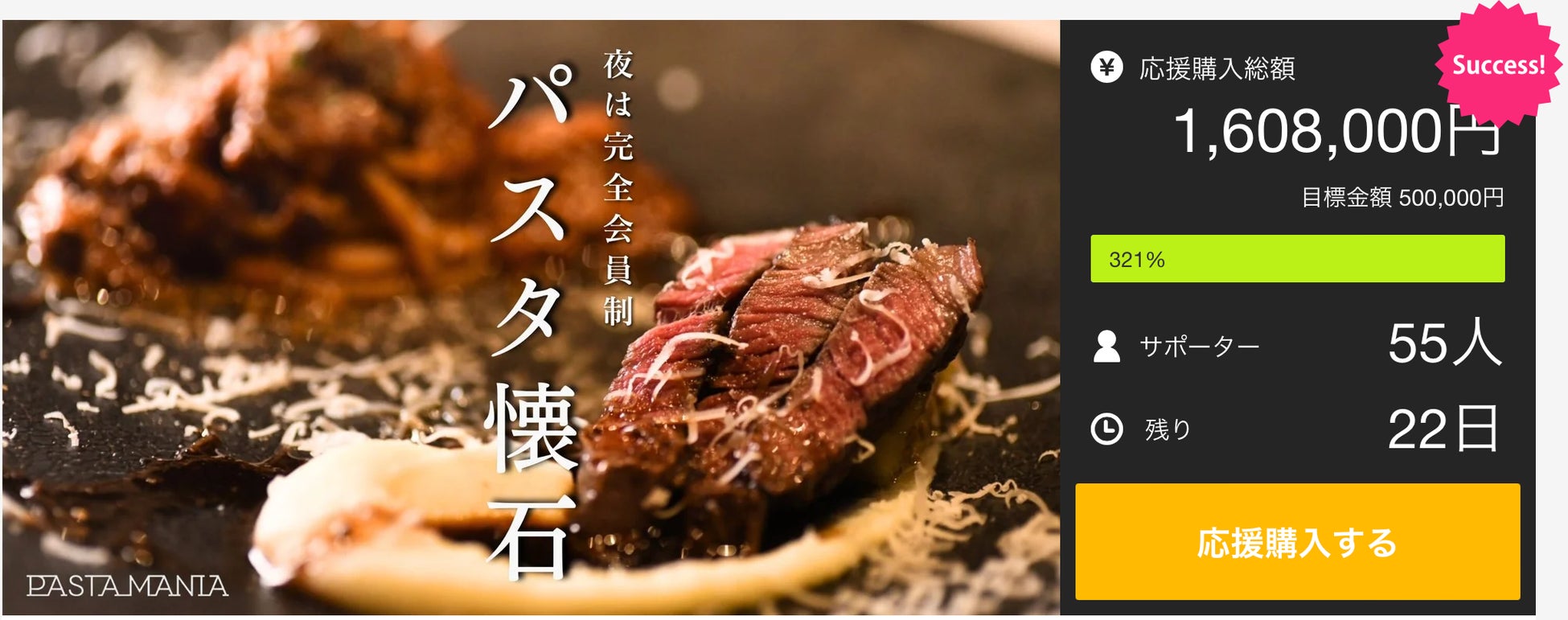 2024年1月10日現在。https://www.makuake.com/project/pastamania/