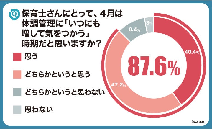 現役保育士500名に「春の子どもの体調管理」について調査を実施 約9割の保育士が、4月は特に「子どもの体調管理に注意」と警戒