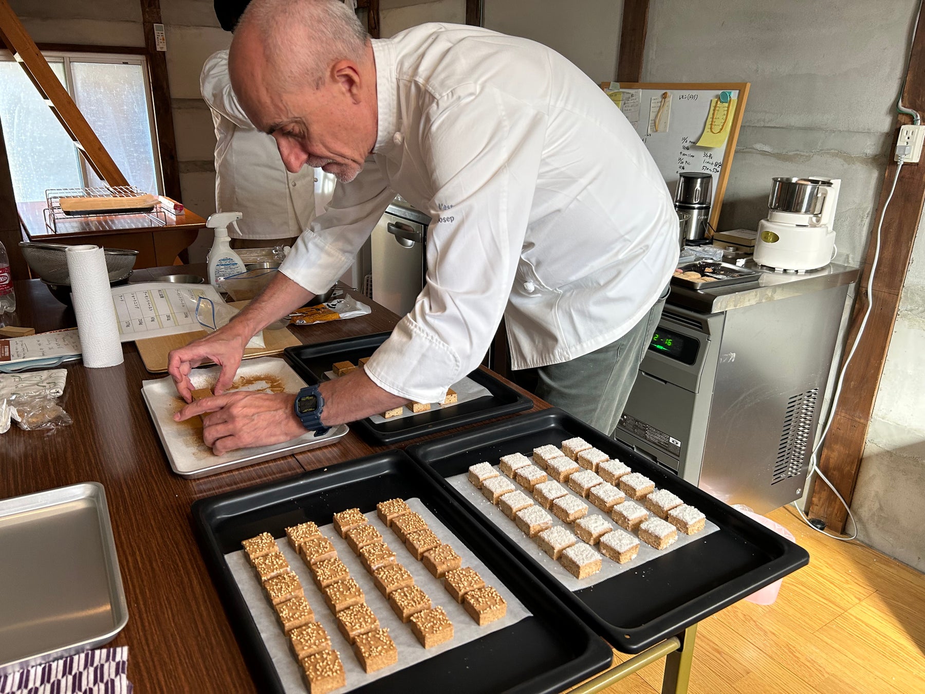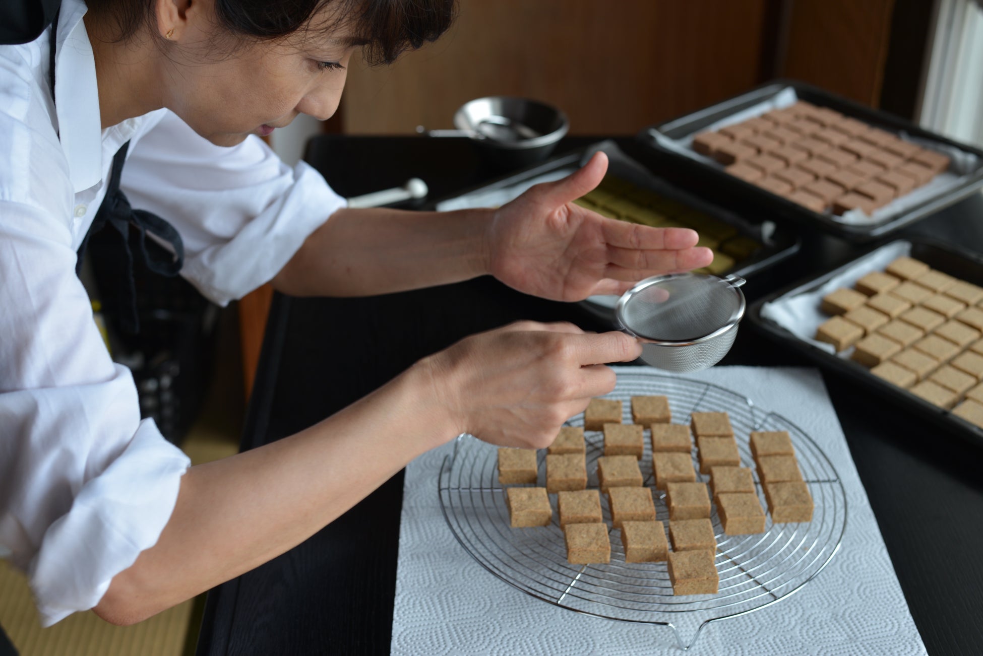 私も、私の家族も本当にポルボロンが大好物なんです。でも、日本で本物のポルボロンにはなかなか出会えません。だから、小豆島で本物の美味しいポルボロンをつくっている依里さんと一緒にコラボレーションできればと思いました。そこで、小豆島に足を運び、瀬戸内の海や風にインスピレーションを受けてつくったのが、このポルボロンです。私の大好きなシナモン(プレーン)とコーヒー、そしてココナッツの3つの味。どれもとても美味しいですし、自信作です。他では決して食べられませんよ。