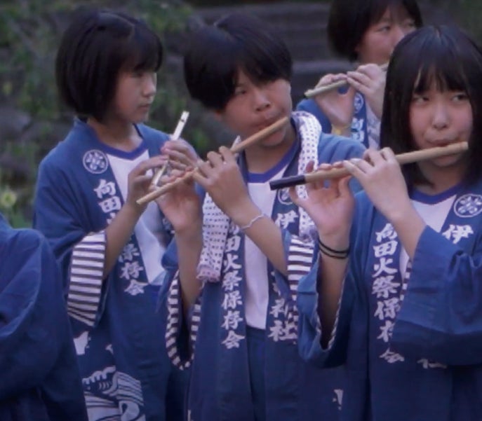 能登島向田町在住の小学生・中学生を中心としたハヤシカタ。囃子方は、笛や太鼓で祭りを盛り上げます。一ヶ月前から毎晩集会所で練習をし、本番を迎えます。